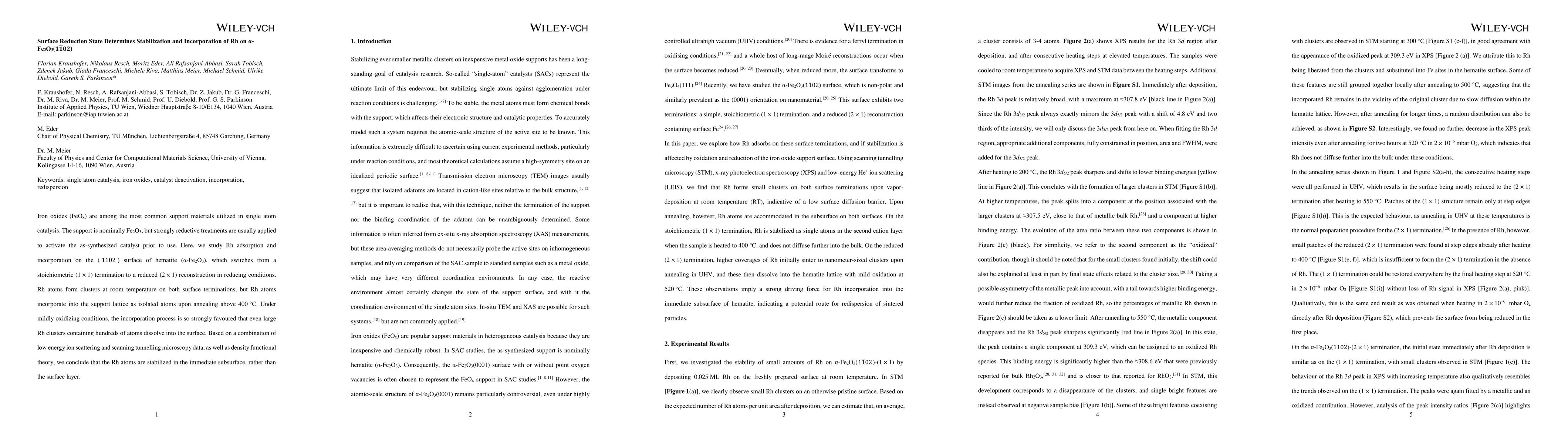 Researchers discovered that Rh atoms on hematite {\alpha}-Fe2O3 surface stabilize in the subsurface layer under certain conditions, rather than on the surface. The study provides insights into the incorporation of Rh into the support lattice under different temperatures and oxidizing conditions.