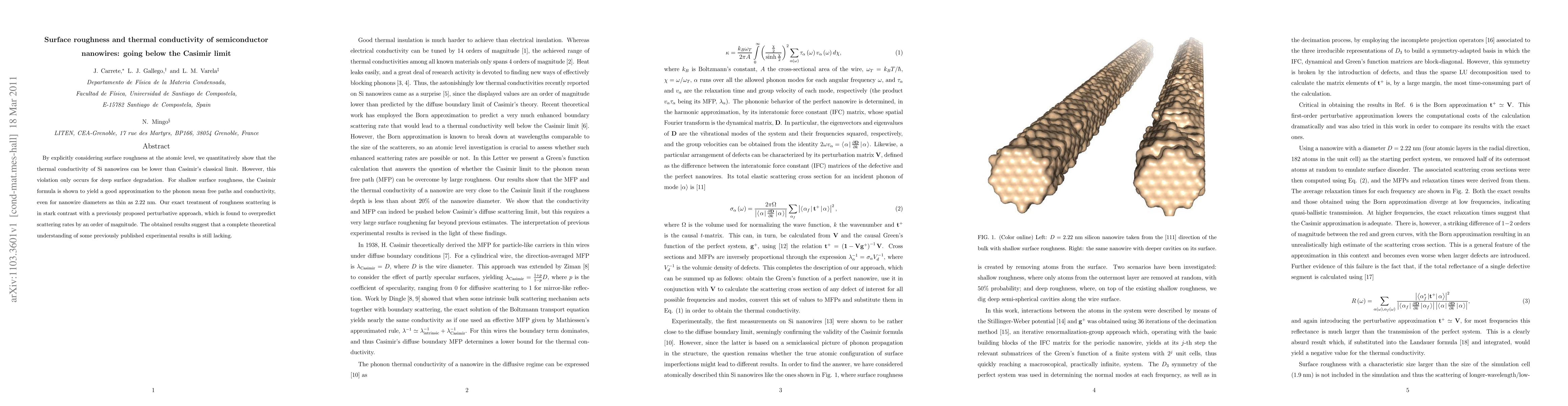 This paper demonstrates that the thermal conductivity of Si nanowires can fall below the classical Casimir limit due to deep surface roughness, contrasting with shallow roughness where the Casimir formula provides a good approximation. The study highlights the limitations of previous perturbative approaches and suggests a need for a more comprehensive theoretical framework to interpret experimental results.