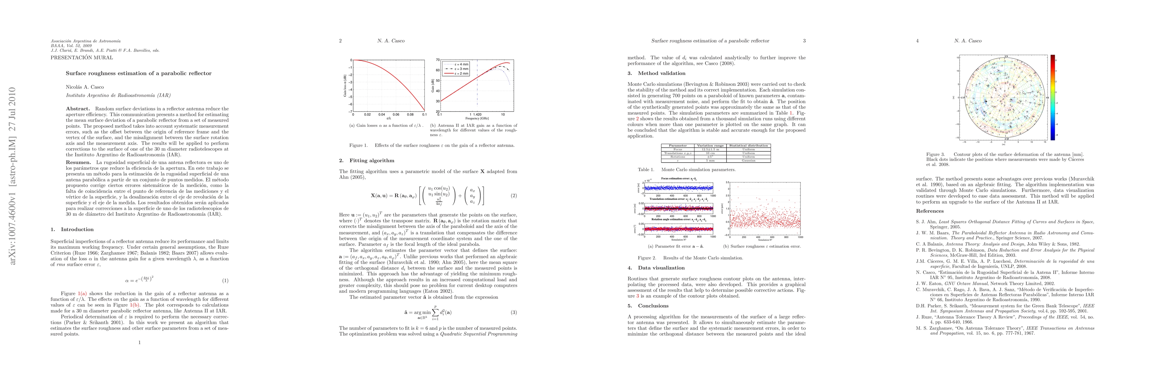 This research presents a novel approach to estimating surface roughness in parabolic reflectors, which can improve antenna performance and reduce errors.