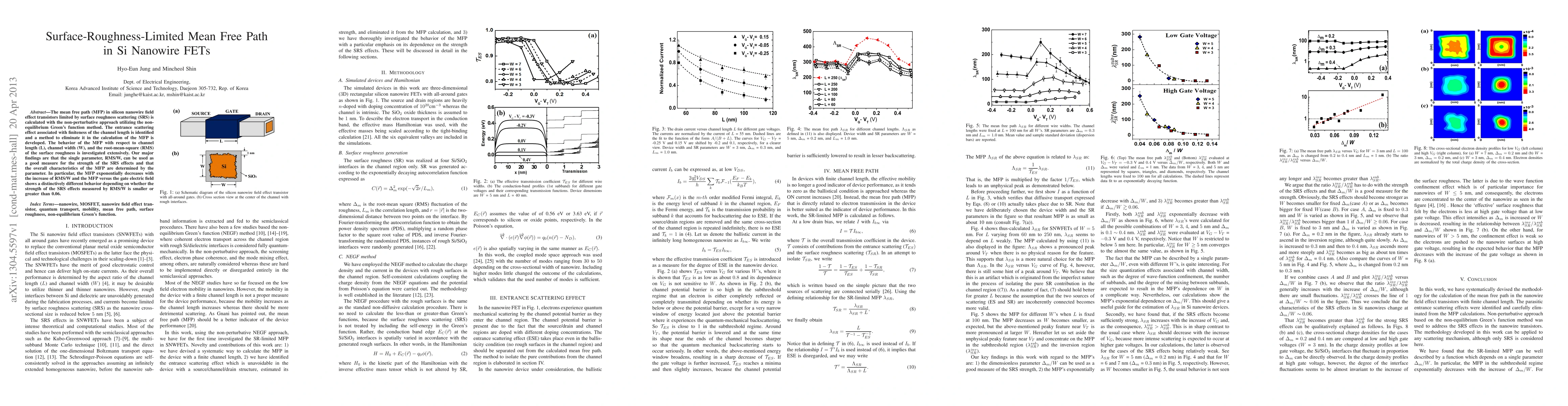 This paper calculates the mean free path in silicon nanowire FETs limited by surface roughness scattering, employing a non-perturbative approach. It identifies and corrects the entrance scattering effect, finding that the mean free path exponentially decreases with increasing RMS surface roughness relative to channel width, and behaves differently based on the SRS strength measured by RMS/W.