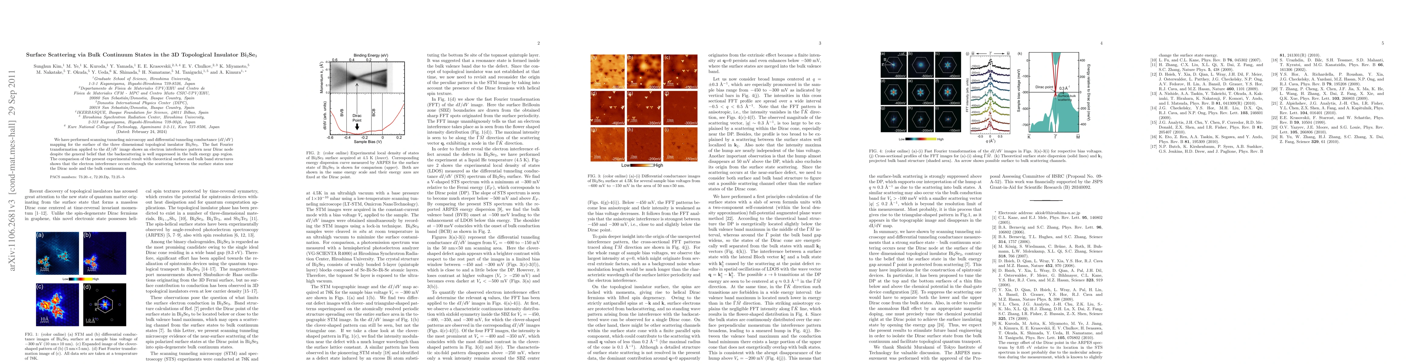 We have performed scanning tunneling microscopy and differential tunneling conductance ($dI/dV$) mapping for the surface of the three dimensional topological insulator Bi$_{2}$Se$_{3}$. The fast Fourier transformation applied to the $dI/dV$ image shows an electron interference pattern near Dirac node despite the general belief that the backscattering is well suppressed in the bulk energy gap region. The comparison of the present experimental result with theoretical surface and bulk band structures shows that the electron interference occurs through the scattering between the surface states near the Dirac node and the bulk continuum states.