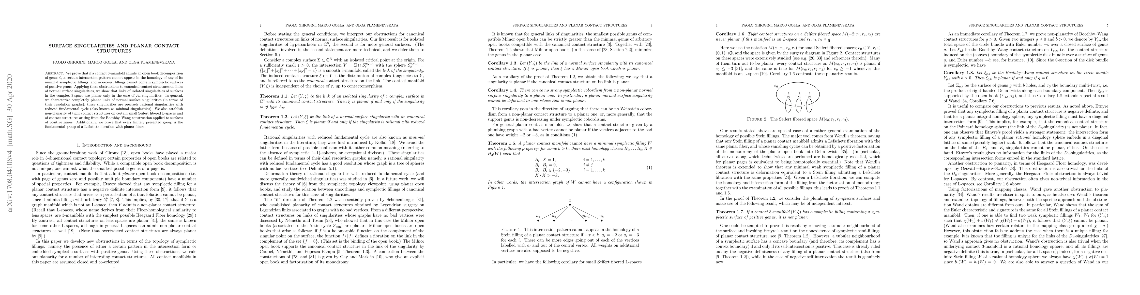 We prove that if a contact 3-manifold admits an open book decomposition of genus 0, a certain intersection pattern cannot appear in the homology of any of its minimal symplectic fillings, and moreover, fillings cannot contain symplectic surfaces of positive genus. Applying these obstructions to canonical contact structures on links of normal surface singularities, we show that links of isolated singularities of surfaces in the complex 3-space are planar only in the case of $A_n$-singularities. In general, we characterize completely planar links of normal surface singularities (in terms of their resolution graphs); these singularities are precisely rational singularities with reduced fundamental cycle (also known as minimal singularities). We also establish non-planarity of tight contact structures on certain small Seifert fibered L-spaces and of contact structures arising from the Boothby--Wang construction applied to surfaces of positive genus. Additionally, we prove that every finitely presented group is the fundamental group of a Lefschetz fibration with planar fibers.