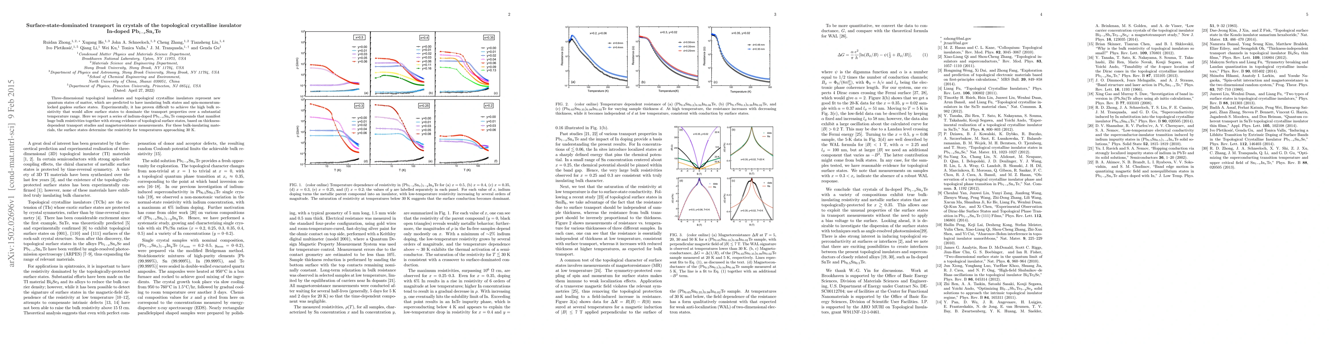Three-dimensional topological insulators and topological crystalline insulators represent new quantum states of matter, which are predicted to have insulating bulk states and spin-momentum-locked gapless surface states. Experimentally, it has proven difficult to achieve the high bulk resistivity that would allow surface states to dominate the transport properties over a substantial temperature range. Here we report a series of indium-doped Pb$_{1-x}$Sn$_x$Te compounds that manifest huge bulk resistivities together with strong evidence of topological surface states, based on thickness-dependent transport studies and magnetoresistance measurements. For these bulk-insulating materials, the surface states determine the resistivity for temperatures approaching 30 K.