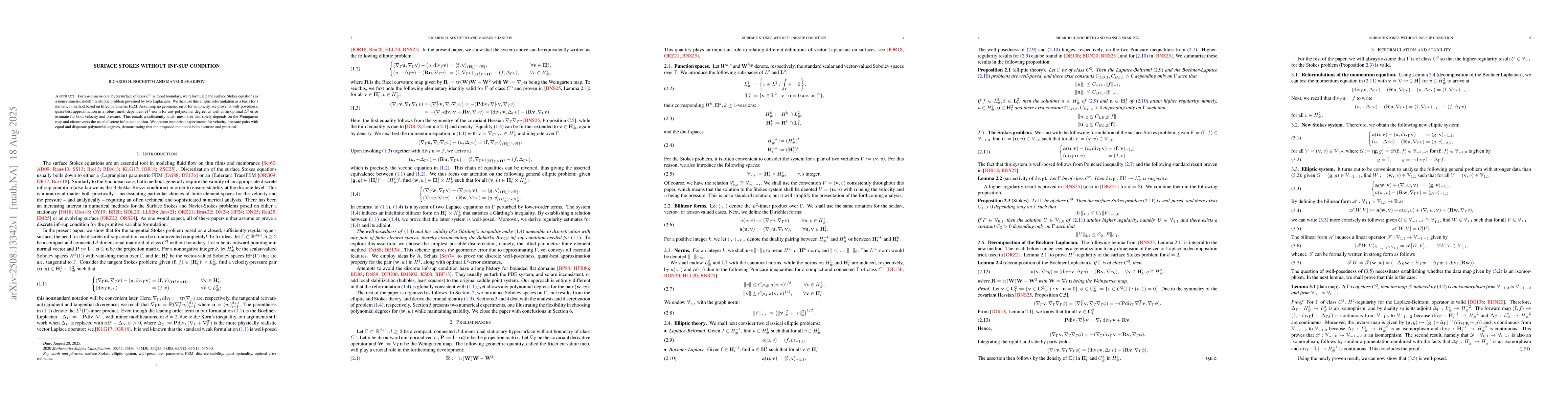 For a $d$-dimensional hypersurface of class $C^3$ without boundary, we reformulate the surface Stokes equations as a nonsymmetric indefinite elliptic problem governed by two Laplacians. We then use this elliptic reformulation as a basis for a numerical method based on lifted parametric FEM. Assuming no geometric error for simplicity, we prove its well-posedness, quasi-best approximation in a robust mesh-dependent $H^1$-norm for any polynomial degree, as well as an optimal $L^2$ error estimate for both velocity and pressure. This entails a sufficiently small mesh size that solely depends on the Weingarten map and circumvents the usual discrete inf-sup condition. We present numerical experiments for velocity-pressure pairs with equal and disparate polynomial degrees, demonstrating that the proposed method is both accurate and practical.