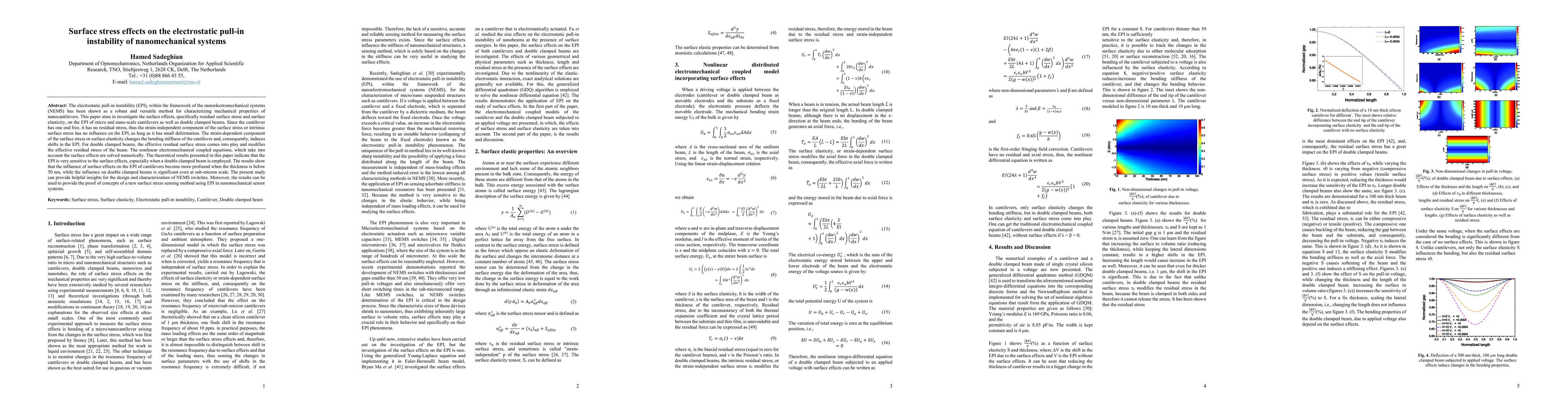This study investigates how surface stress affects the electrostatic pull-in instability of nanomechanical systems, showing that it significantly impacts cantilevers and double-clamped beams at sub-micron scales.