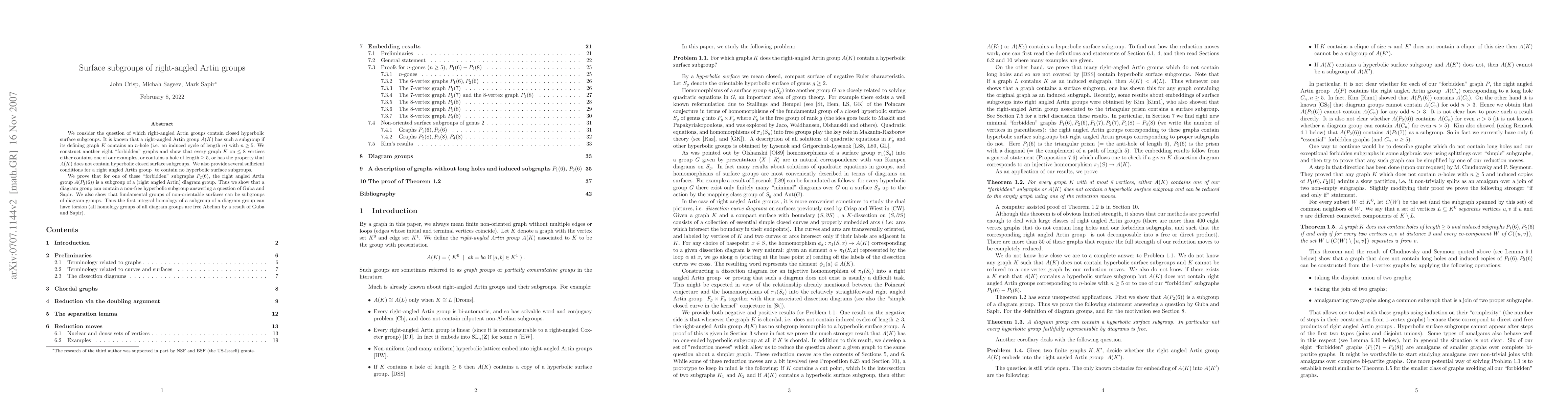 This paper investigates right-angled Artin groups (RAAGs) containing closed hyperbolic surface subgroups, identifying specific "forbidden" graphs that prevent such subgroups. It demonstrates that for the "forbidden" subgraph $P_2(6)$, the RAAG $A(P_2(6))$ is a subgroup of a diagram group, revealing that diagram groups can host non-free hyperbolic subgroups.