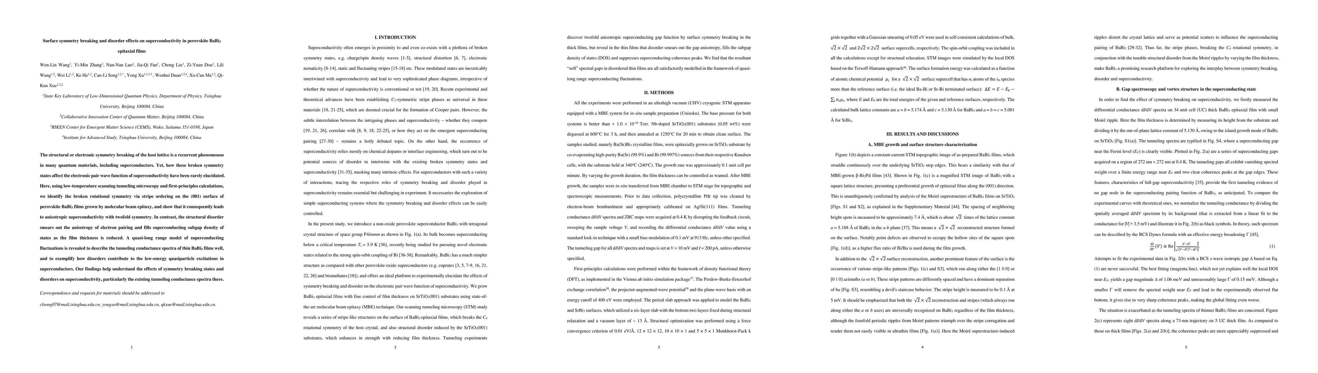 This study investigates how broken symmetry and disorder in perovskite BaBi3 films affect superconductivity, revealing anisotropic superconductivity due to stripe ordering and disorder-induced suppression of superconductivity anisotropy in thin films.