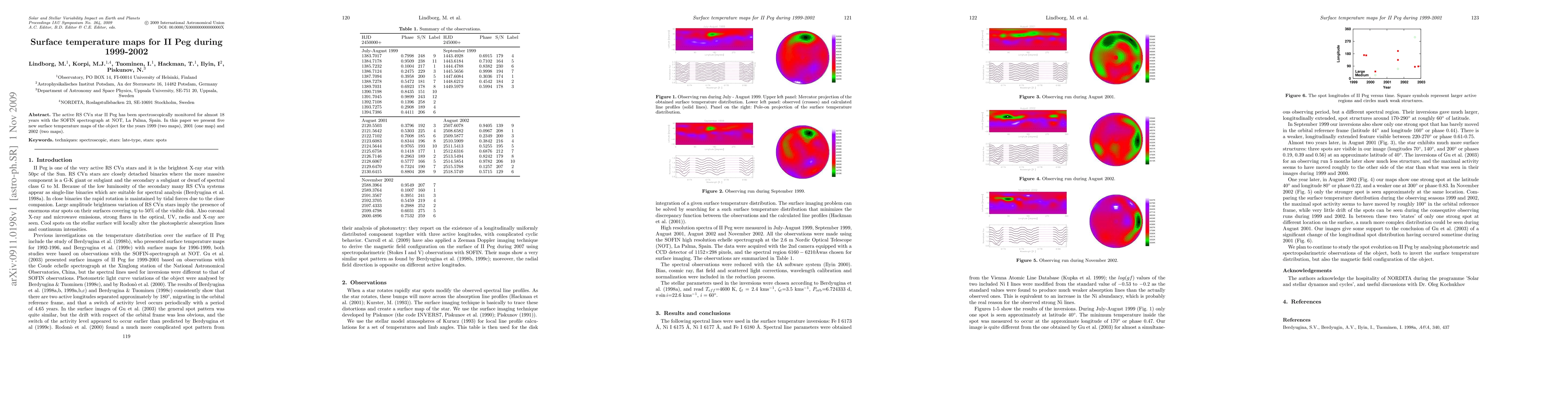 The active RS CVn star II Peg has been spectroscopically monitored for almost 18 years with the SOFIN spectrograph at NOT, La Palma, Spain. In this paper we present five new surface temperature maps of the object for the years 1999 (two maps), 2001 (one map) and 2002 (two maps).