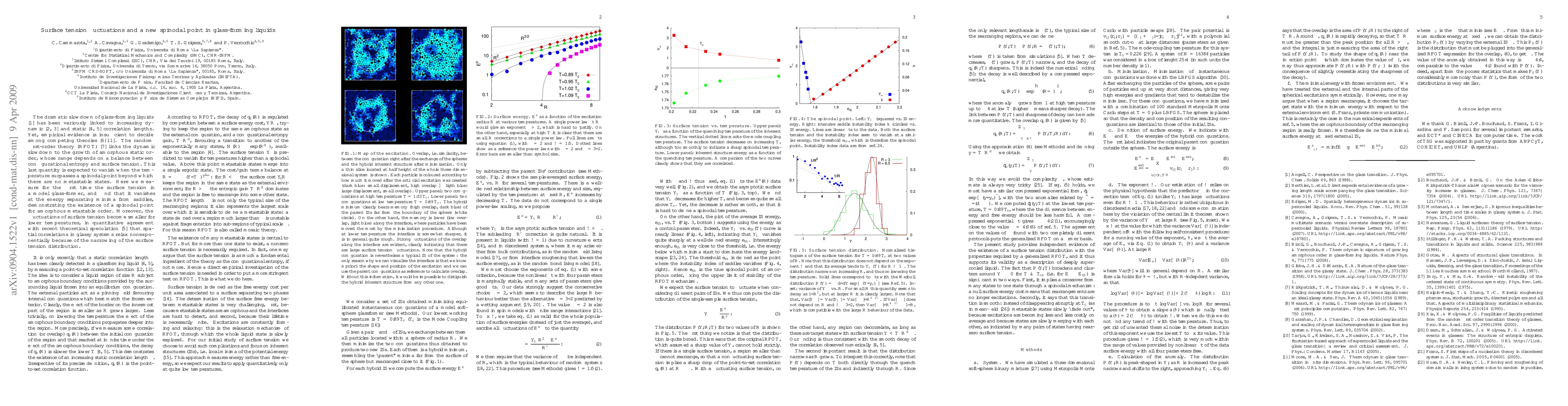 The dramatic slowdown of glass-forming liquids has been variously linked to increasing dynamic and static correlation lengths. Yet, empirical evidence is insufficient to decide among competing theories. The random first order theory (RFOT) links the dynamic slowdown to the growth of amorphous static order, whose range depends on a balance between configurational entropy and surface tension. This last quantity is expected to vanish when the temperature surpasses a spinodal point beyond which there are no metastable states. Here we measure for the first time the surface tension in a model glass-former, and find that it vanishes at the energy separating minima from saddles, demonstrating the existence of a spinodal point for amorphous metastable order. Moreover, the fluctuations of surface tension become smaller for lower temperatures, in quantitative agreement with recent theoretical speculation that spatial correlations in glassy systems relax nonexponentially because of the narrowing of the surface tension distribution.