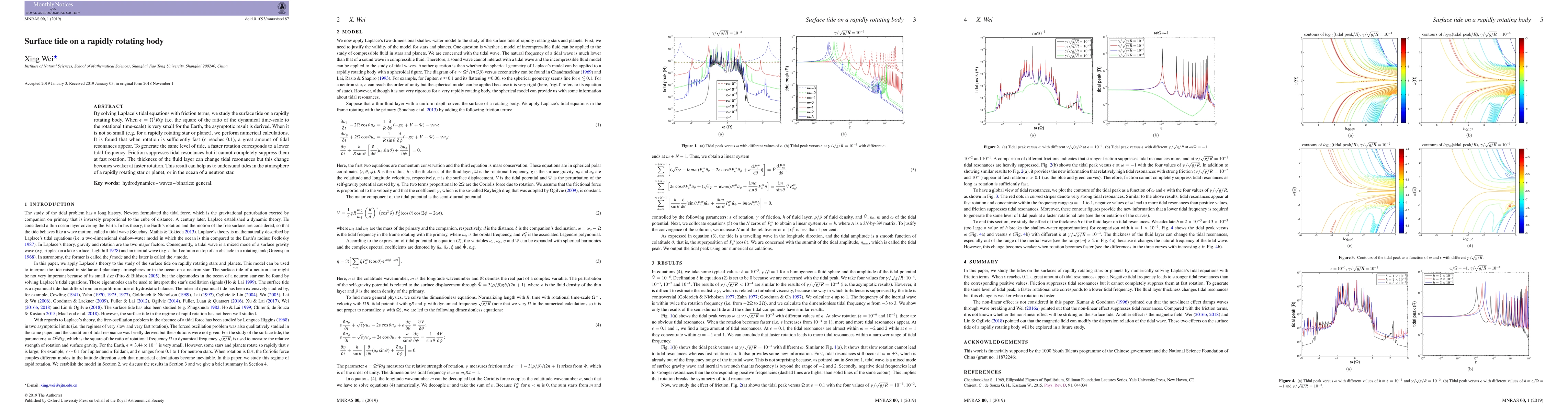 The research numerically solves Laplace's tidal equations with friction terms to study surface tides on rapidly rotating bodies, using a two-dimensional shallow-water model and dimensionless equations.