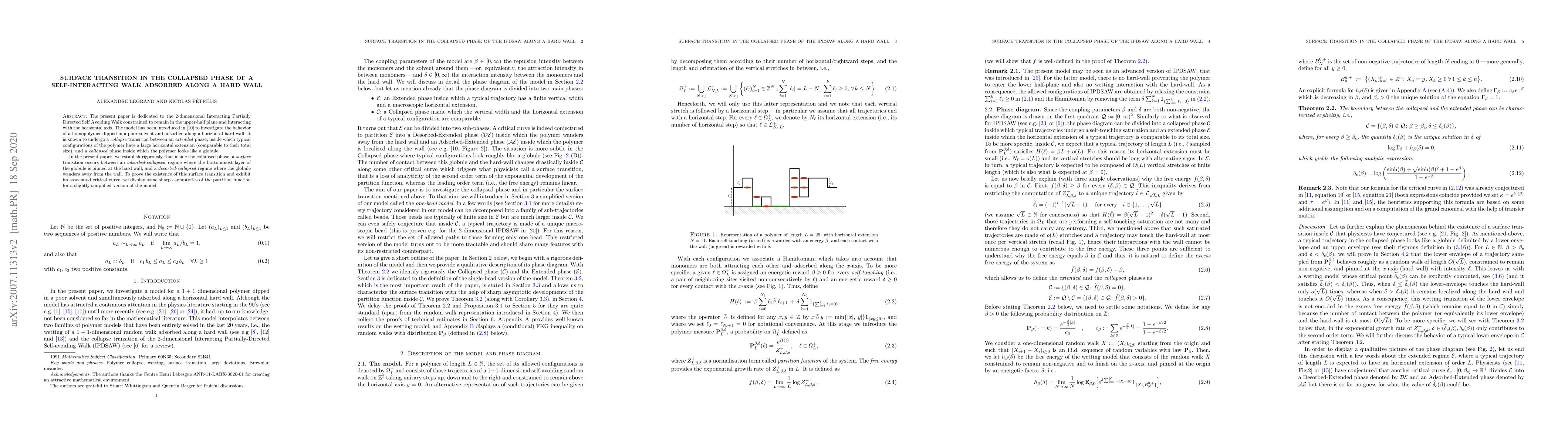The present paper is dedicated to the 2-dimensional Interacting Partially Directed Self Avoiding Walk constrained to remain in the upper-half plan and interacting with the horizontal axis. The model has been introduced in \cite{F90} to investigate the behavior of a homopolymer dipped in a poor solvent and adsorbed along a horizontal hard wall. It is known to undergo a collapse transition between an extended phase, inside which typical configurations of the polymer have a large horizontal extension (comparable to their total size), and a collapsed phase inside which the polymer looks like a globule. In the present paper, we establish rigorously that inside the collapsed phase, a surface transition occurs between an adsorbed-collapsed regime where the bottommost layer of the globule is pinned at the hard wall, and a desorbed-collapsed regime where the globule wanders away from the wall. To prove the existence of this surface transition and exhibit its associated critical curve, we display some sharp asymptotics of the partition function for a slightly simplified version of the model.