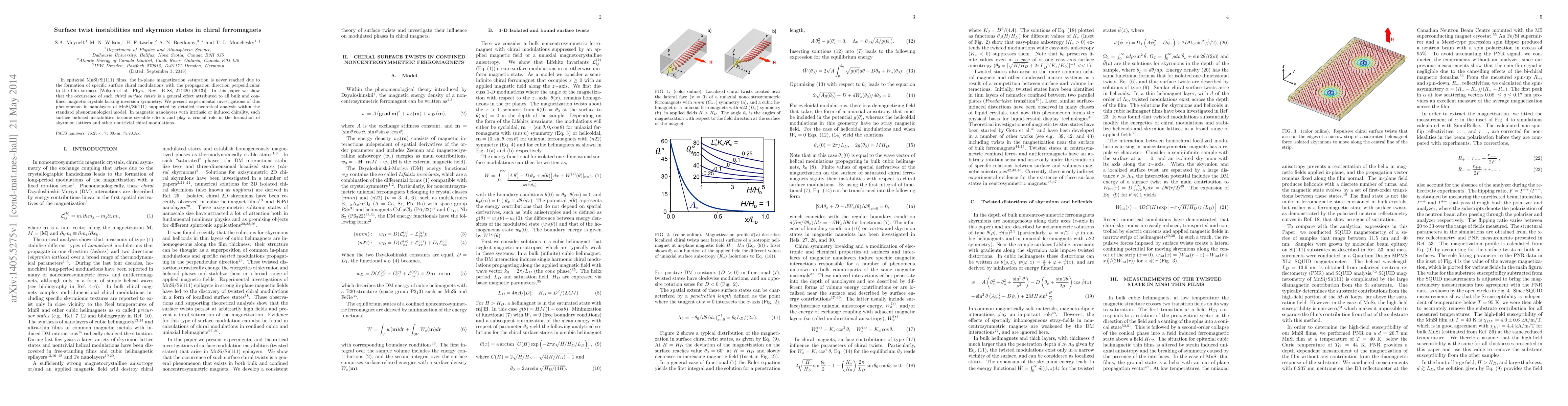 This paper investigates surface twist instabilities in chiral ferromagnets, particularly in MnSi/Si(111) nanolayers, revealing that these instabilities are a general phenomenon in magnetic crystals lacking inversion symmetry. The study demonstrates the significant role of these instabilities in forming skyrmion lattices and other chiral modulations.