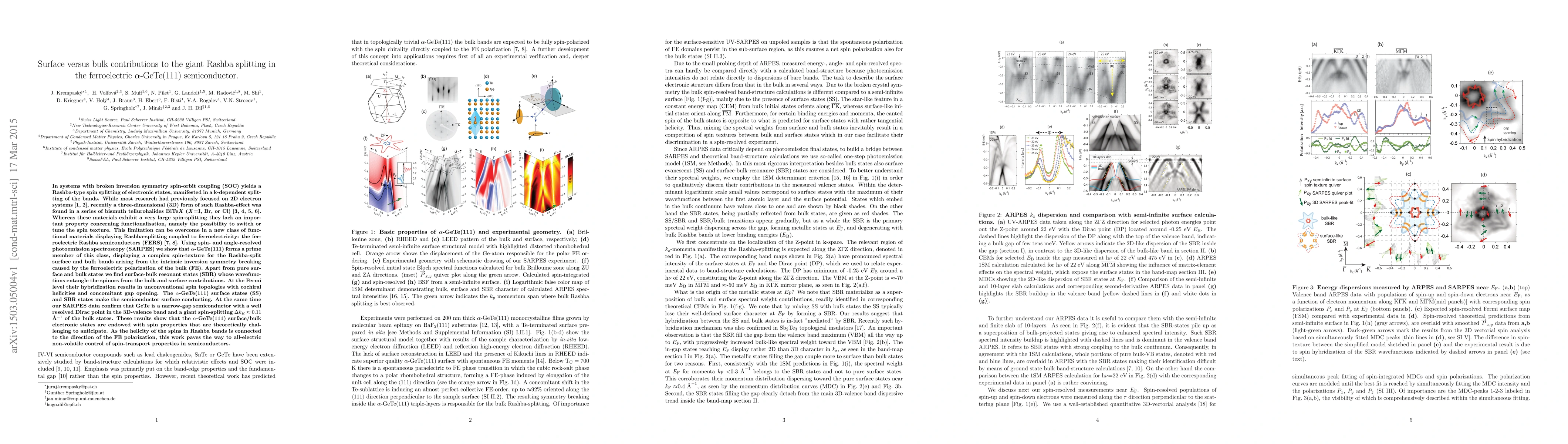 This paper explores the giant Rashba spin splitting in ferroelectric α-GeTe(111), demonstrating that both surface and bulk states contribute to this phenomenon, with surface-bulk resonant states leading to complex spin textures. The study indicates potential for all-electric control of spin-transport properties in semiconductors.