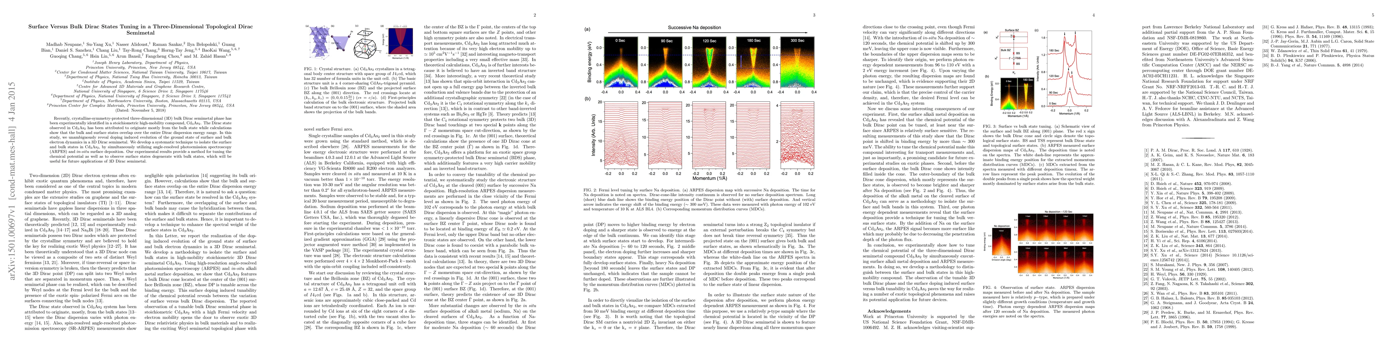This study reveals the tuning of surface versus bulk Dirac states in Cd3As2 using ARPES and surface deposition techniques, showing that doping can evolve the ground state dynamics, and offering a method to manipulate the chemical potential and observe degenerate surface states, important for future applications of 3D Dirac semimetals.