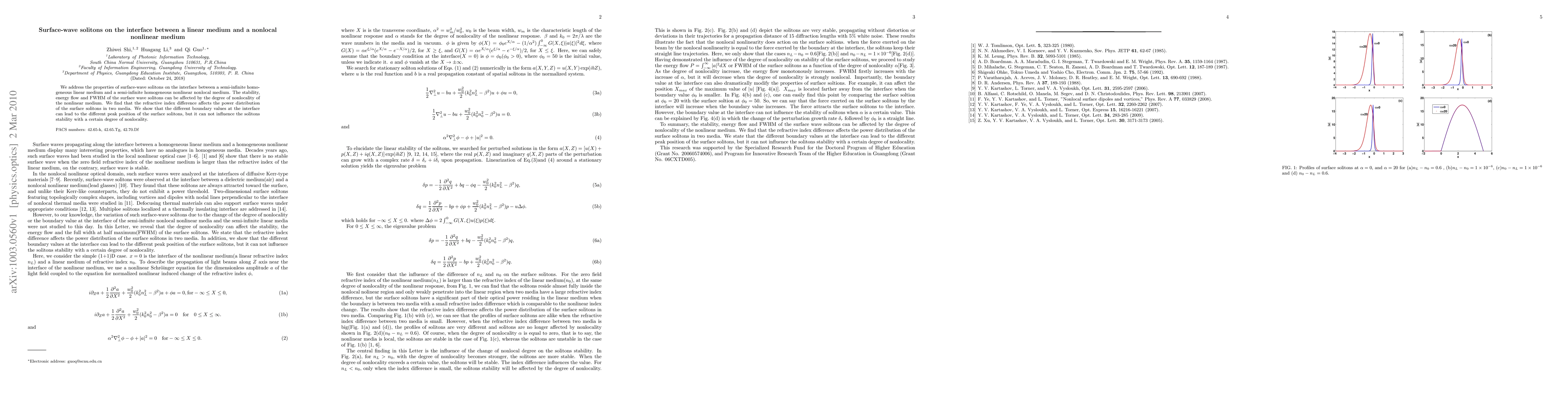 This paper investigates surface-wave solitons at the interface between a linear and a nonlocal nonlinear medium, demonstrating that nonlocality influences stability, energy flow, and peak position while maintaining soliton stability with a fixed degree of nonlocality. The refractive index difference impacts the power distribution across the two media.