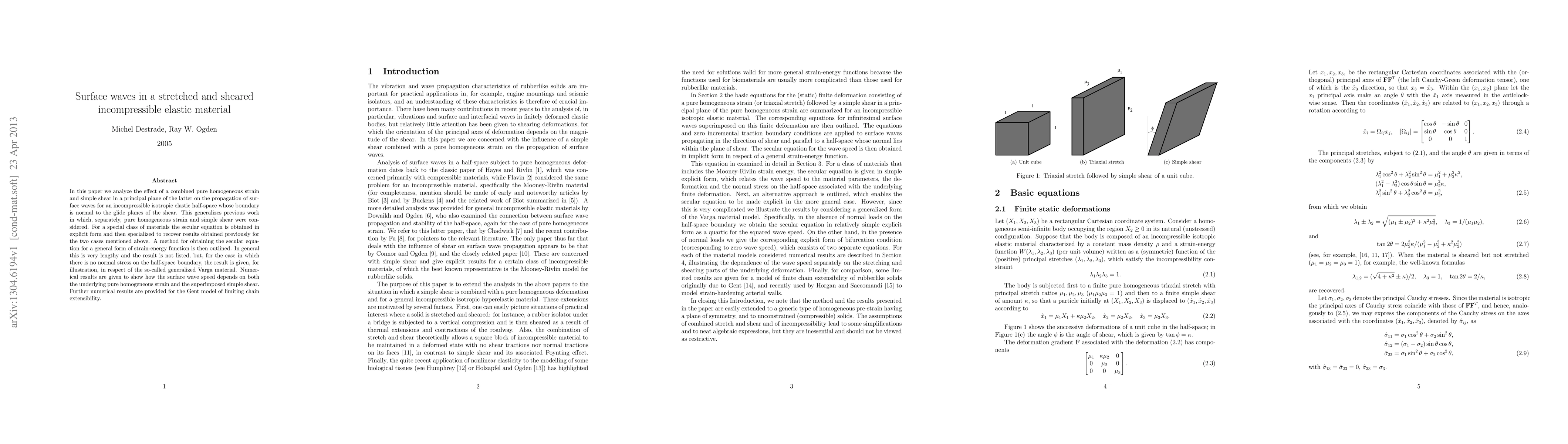 In this paper we analyze the effect of a combined pure homogeneous strain and simple shear in a principal plane of the latter on the propagation of surface waves for an incompressible isotropic elastic half-space whose boundary is normal to the glide planes of the shear. This generalizes previous work in which, separately, pure homogeneous strain and simple shear were considered. For a special class of materials the secular equation is obtained in explicit form and then specialized to recover results obtained previously for the two cases mentioned above. A method for obtaining the secular equation for a general form of strain-energy function is then outlined. In general this is very lengthy and the result is not listed, but, for the case in which there is no normal stress on the half-space boundary, the result is given, for illustration, in respect of the so-called generalized Varga material. Numerical results are given to show how the surface wave speed depends on both the underlying pure homogeneous strain and the superimposed simple shear. Further numerical results are provided for the Gent model of limiting chain extensibility.