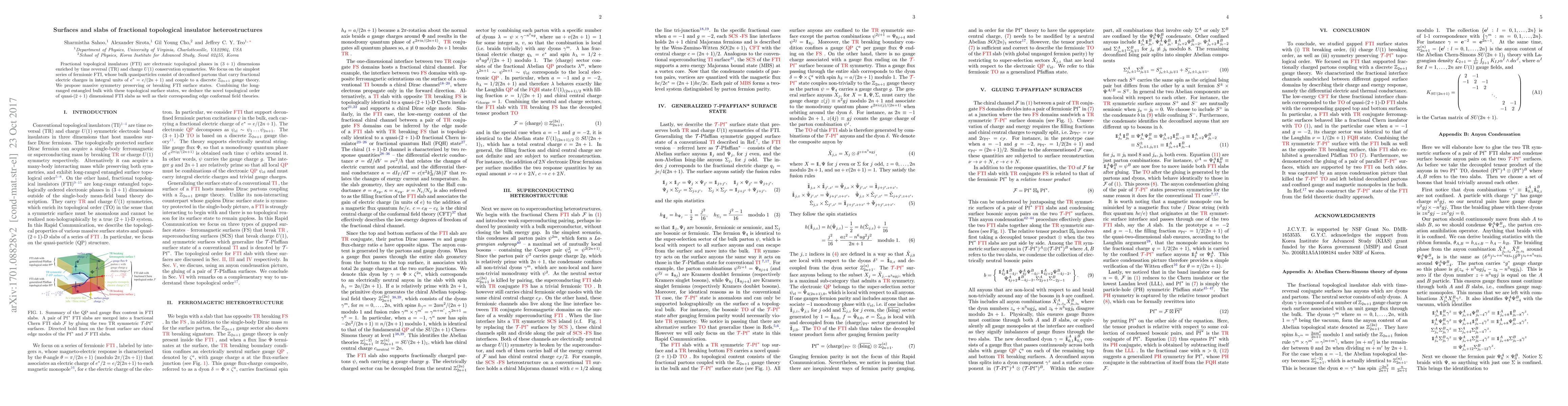 This paper explores fractional topological insulators in $(3+1)$ dimensions, proposing novel surface states and topological order for quasi-$(2+1)$ dimensional slabs, characterized by deconfined partons and fractional electric charges, and their corresponding edge conformal field theories.