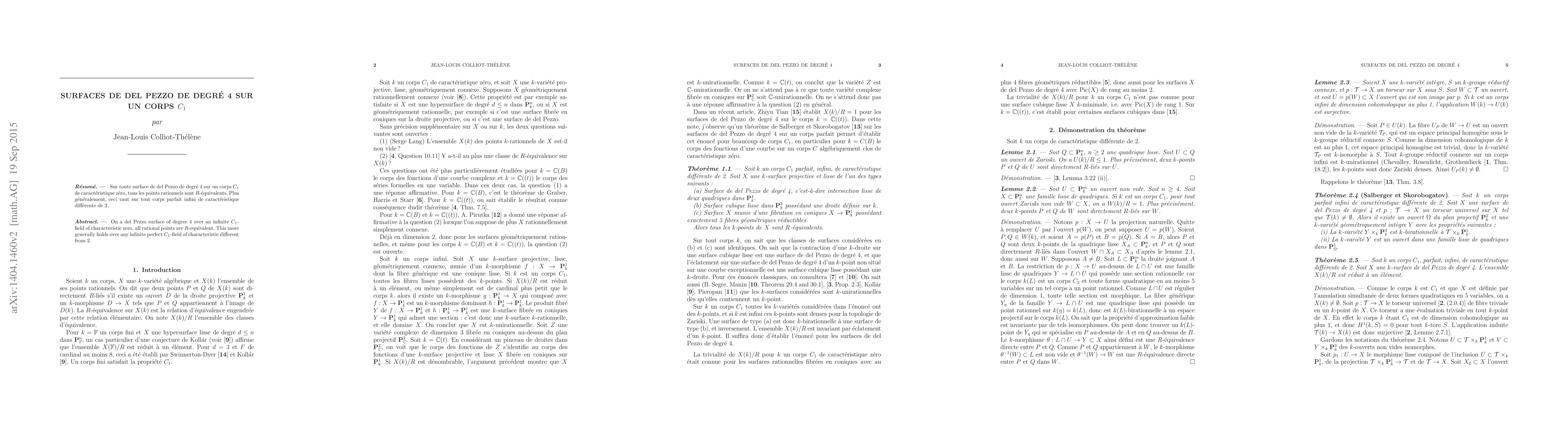 Sur toute surface de del Pezzo de degr\'e 4 sur un corps $C_1$ de caract\'eristique z\'ero, tous les points rationnels sont R-\'equivalents. Plus g\'en\'eralement, ceci vaut sur tout corps parfait infini de caract\'eristique diff\'erente de 2. ---- On a del Pezzo surface of degree 4 over a characteristic zero $C_1$-field, all rational points are R-equivalent.This more generally holds over any infinite perfect $C_{1}$-field of characteristic different from 2.