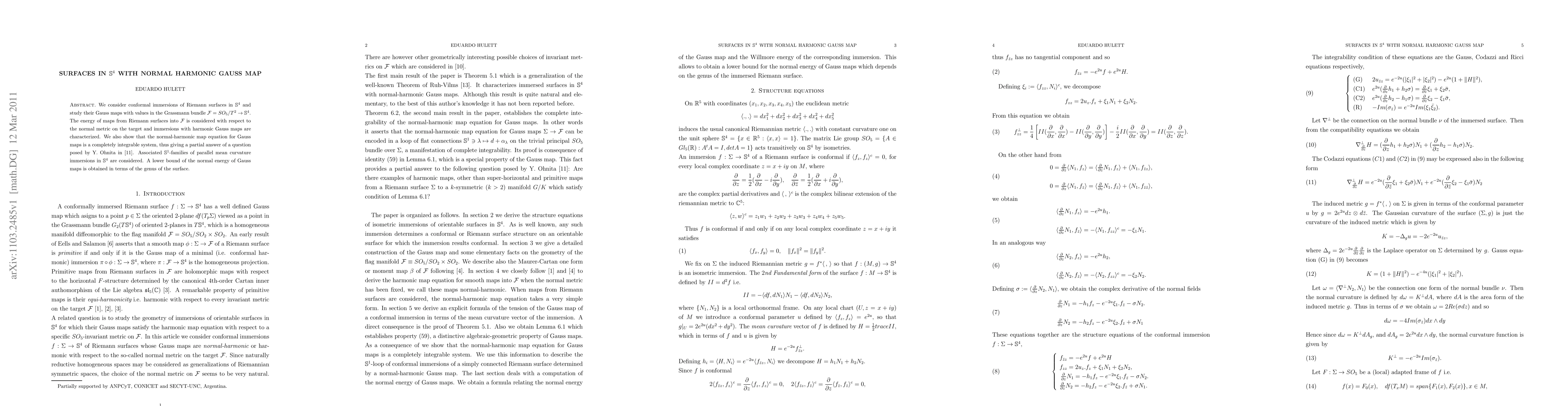 This paper studies conformal immersions of Riemann surfaces in $\mathbb{S}^4$ with a focus on their Gauss maps, showing that normal harmonic Gauss maps lead to a completely integrable system. A lower bound for the normal energy of such Gauss maps is derived in terms of the surface's genus.