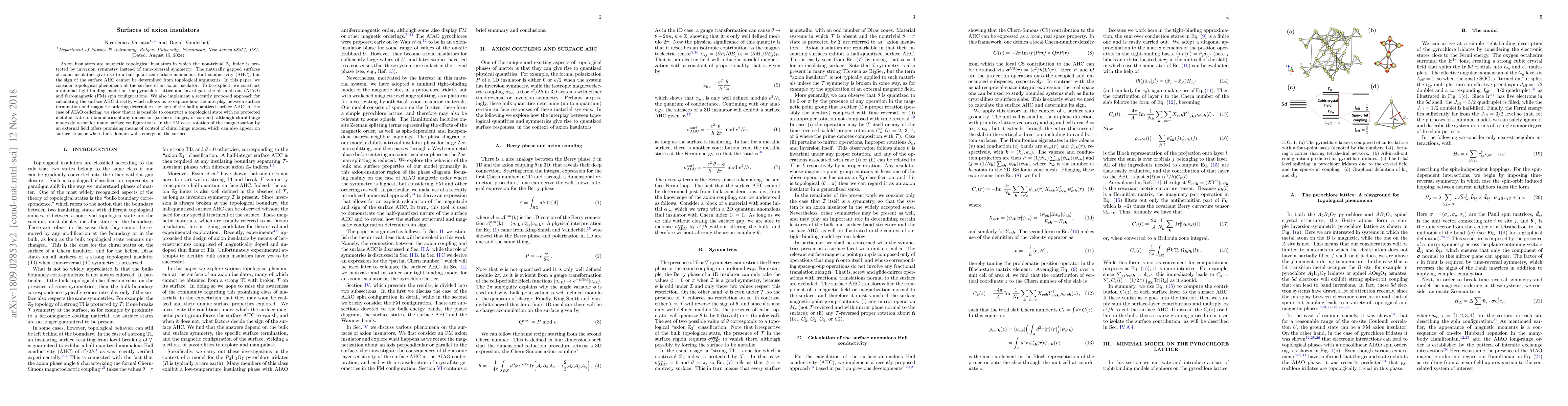 Axion insulators are magnetic topological insulators in which the non-trivial $\mathbb{Z}_2$ index is protected by inversion symmetry instead of time-reversal symmetry. The naturally gapped surfaces of axion insulators give rise to a half-quantized surface anomalous Hall conductivity (AHC), but the sign of the surface AHC cannot be determined from topological arguments. In this paper, we consider topological phenomena at the surface of an axion insulator. To be explicit, we construct a minimal tight-binding model on the pyrochlore lattice and investigate the all-in-all-out (AIAO) and ferromagnetic (FM) spin configurations. We also implement a recently proposed approach for calculating the surface AHC directly, which allows us to explore how the interplay between surface termination and magnetic ordering determines the sign of the half-quantized surface AHC. In the case of AIAO ordering, we show that it is possible to construct a topological state with no protected metallic states on boundaries of any dimension (surfaces, hinges, or corners), although chiral hinge modes do occur for many surface configurations. In the FM case, rotation of the magnetization by an external field offers a promising means of control of chiral hinge modes, which can also appear on surface steps or where bulk domain walls emerge at the surface.