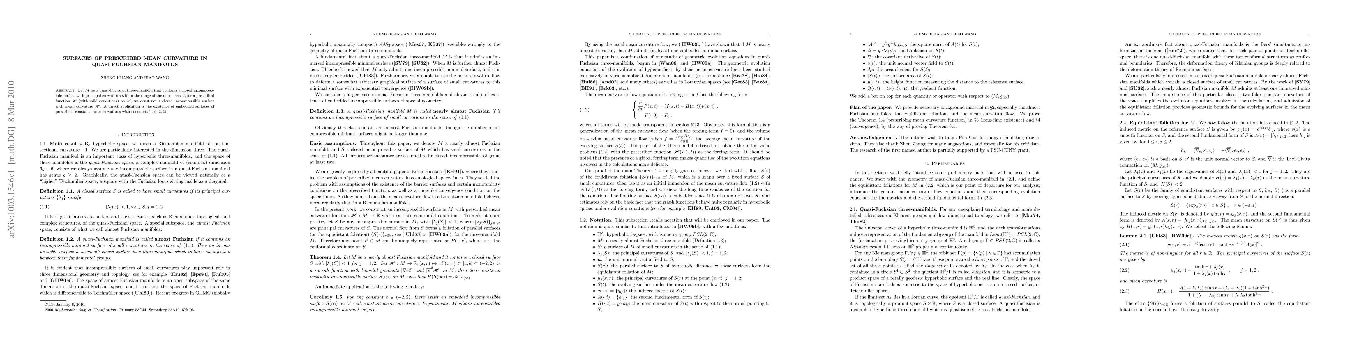 The paper constructs surfaces of prescribed mean curvature in quasi-Fuchsian three-manifolds using mean curvature flow with a forcing term, analyzing the evolution equations and obtaining uniform bounds for quantities involved.