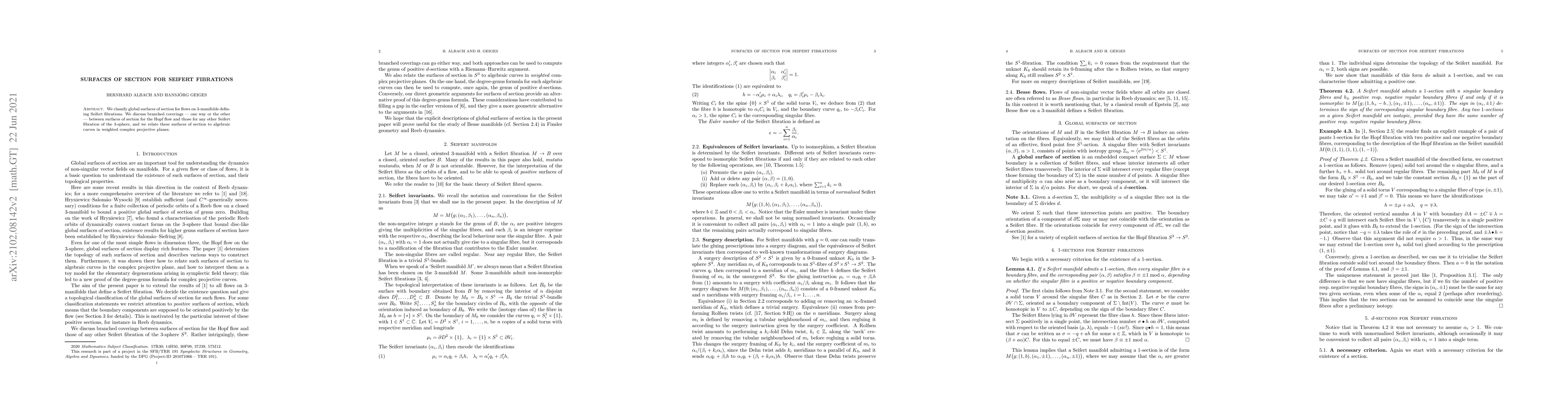 This paper classifies global surfaces of section for flows on Seifert fibrations in 3-manifolds, exploring branched coverings between these surfaces and those of the Hopf flow, and linking them to algebraic curves in weighted complex projective planes.