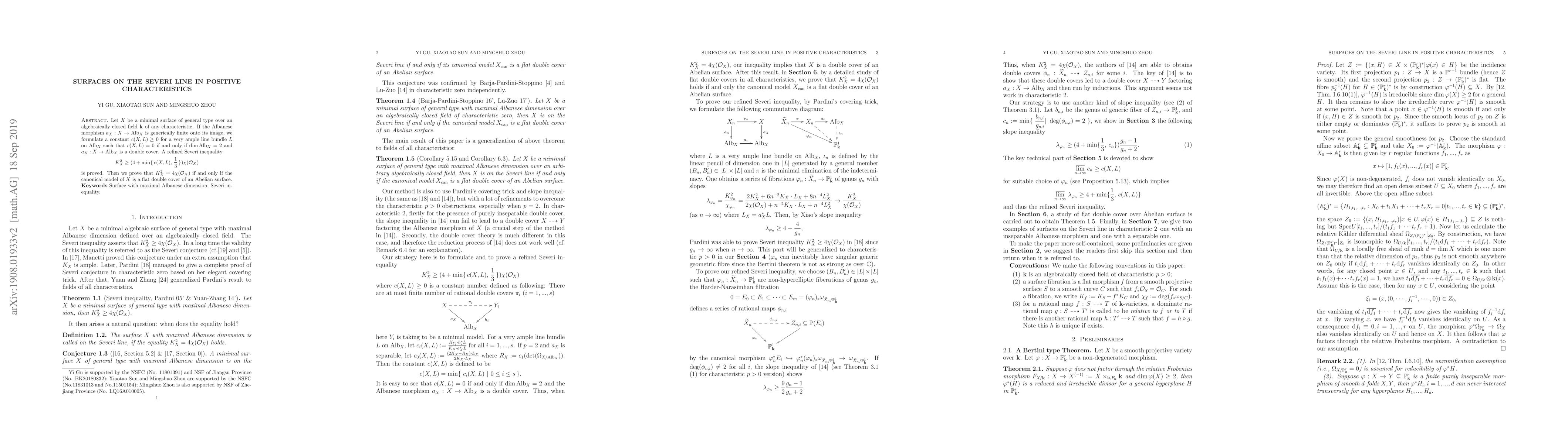 Researchers prove a refined Severi inequality for minimal surfaces of general type over algebraically closed fields, linking surface characteristics to the properties of their Albanese morphisms.