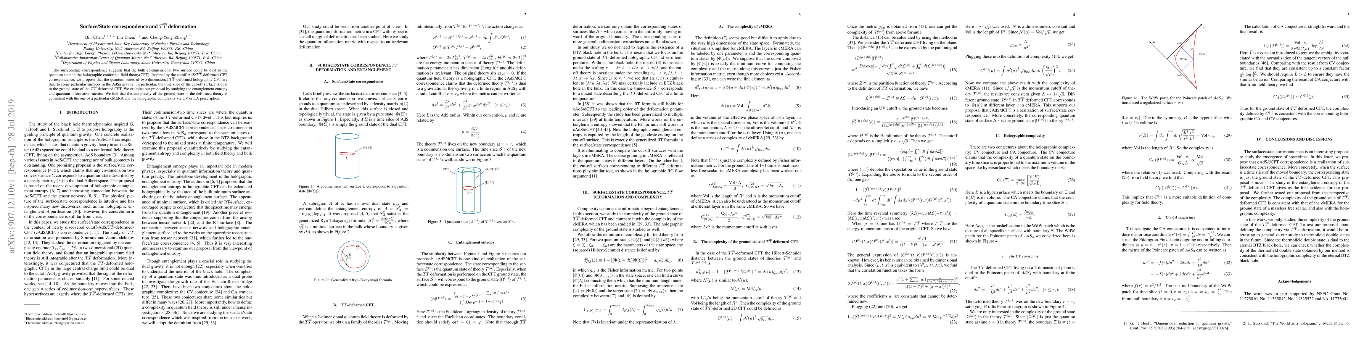 The surface/state correspondence suggests that the bulk co-dimensional two surface could be dual to the quantum state in the holographic conformal field theory(CFT). Inspired by the cutoff-AdS/$T\overline{T}$-deformed-CFT correspondence, we propose that the quantum states of two-dimensional $T\overline{T}$-deformed holographic CFT are dual to some particular surfaces in the AdS$_3$ gravity. In particular, the time slice of the cut-off surface is dual to the ground state of the $T\overline{T}$-deformed CFT. We examine our proposal by studying the entanglement entropy and quantum information metric. We find that the complexity of the ground state in the deformed theory is consistent with the one of a particular cMERA and the holographic complexity via CV or CA prescription.