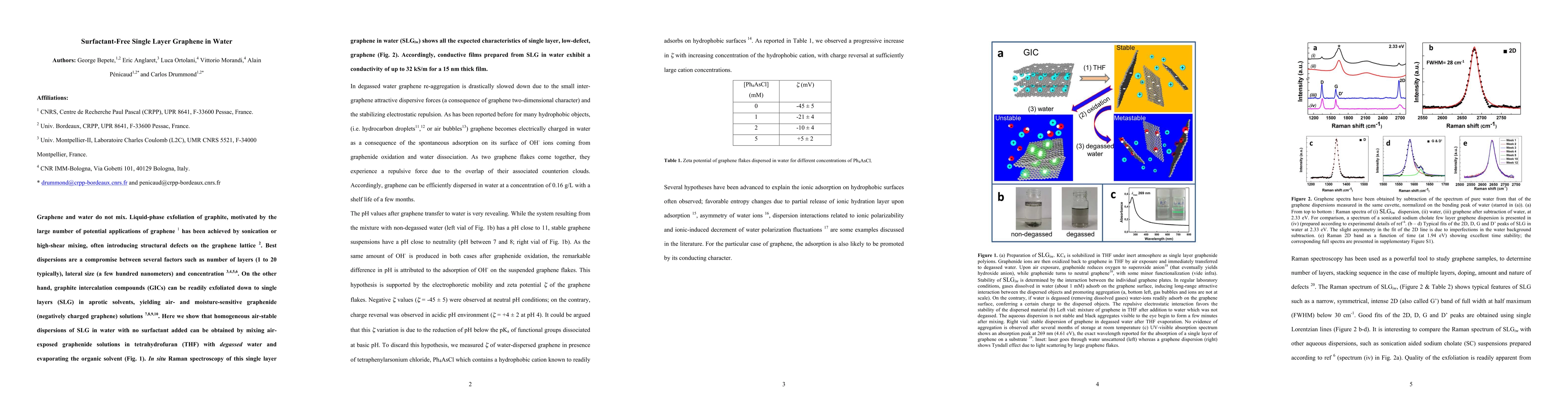 Researchers successfully created a stable dispersion of single layer graphene in water without using surfactants, achieving high concentrations of 0.16 mg/mL with in situ Raman spectroscopy and microscopy confirming its identity.