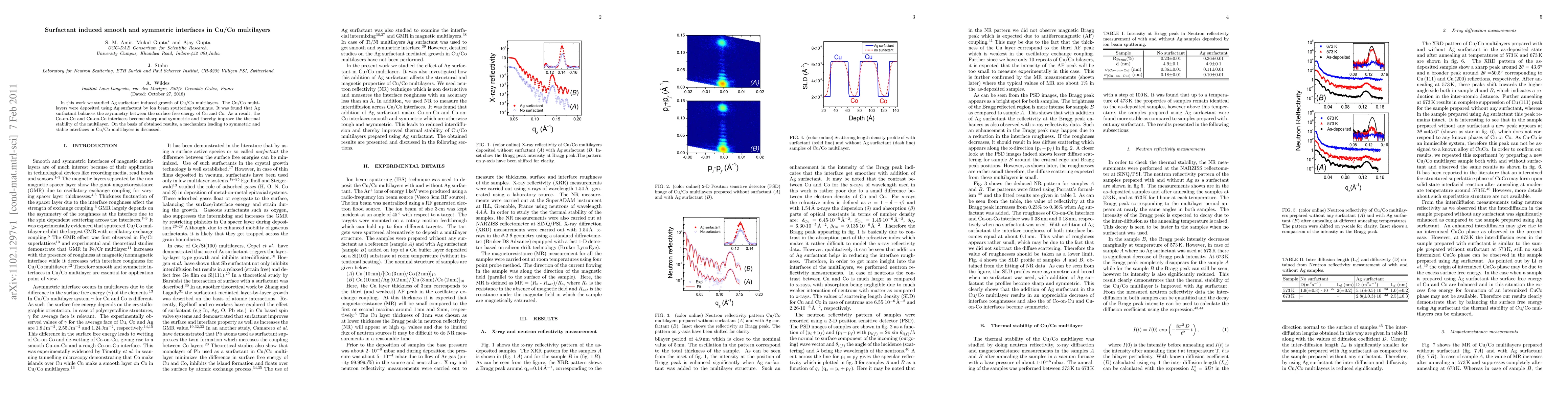 This study investigates the use of Ag surfactant to enhance the growth of Cu/Co multilayers via ion beam sputtering, finding that it balances surface free energy asymmetries, leading to sharp, symmetric, and thermally stable interfaces. The research discusses the underlying mechanism for these improved interface characteristics.