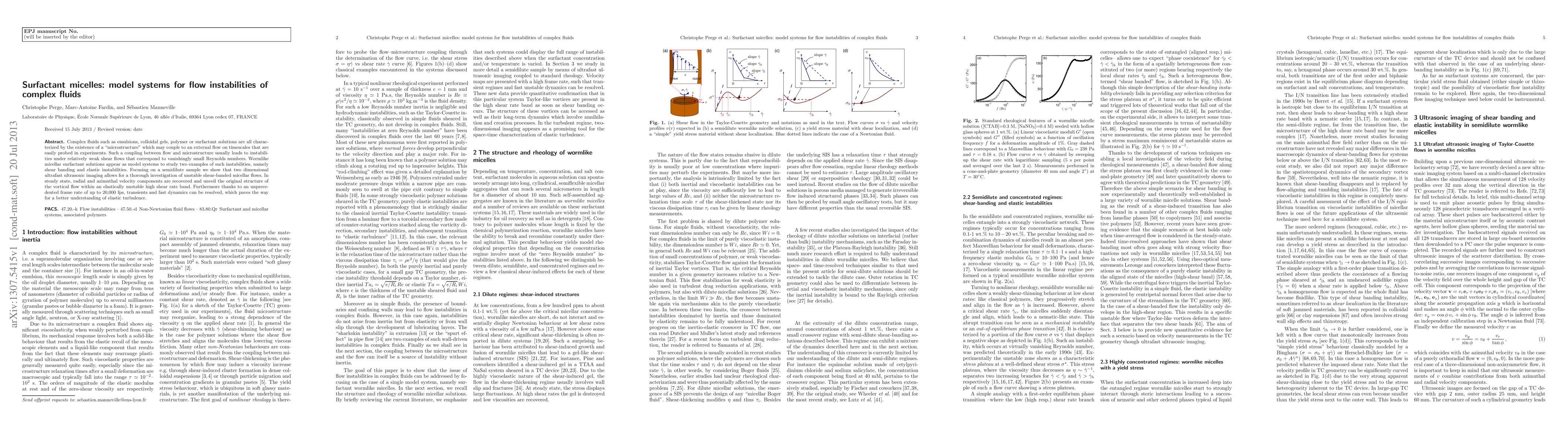 Complex fluids such as emulsions, colloidal gels, polymer or surfactant solutions are all characterized by the existence of a "microstructure" which may couple to an external flow on timescales that are easily probed in experiments. Such a coupling between flow and microstructure usually leads to instabilities under relatively weak shear flows that correspond to vanishingly small Reynolds numbers. Wormlike micellar surfactant solutions appear as model systems to study two examples of such instabilities, namely shear banding and elastic instabilities. Focusing on a semidilute sample we show that two dimensional ultrafast ultrasonic imaging allows for a thorough investigation of unstable shear-banded micellar flows. In steady state, radial and azimuthal velocity components are recovered and unveil the original structure of the vortical flow within an elastically unstable high shear rate band. Furthermore thanks to an unprecedented frame rate of up to 20,000 fps, transients and fast dynamics can be resolved, which paves the way for a better understanding of elastic turbulence.