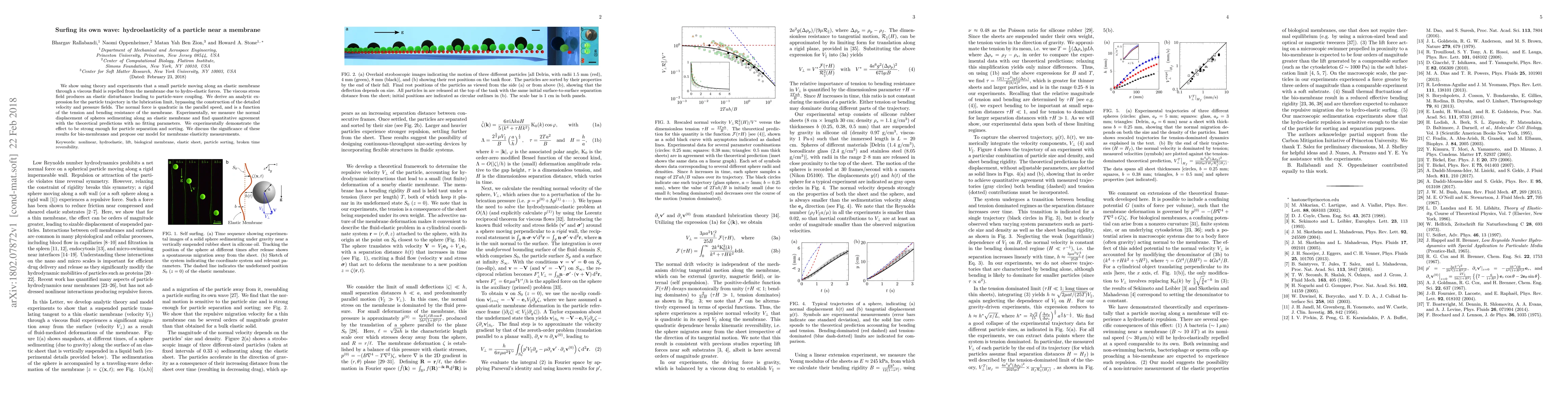 We show using theory and experiments that a small particle moving along an elastic membrane through a viscous fluid is repelled from the membrane due to hydro-elastic forces. The viscous stress field produces an elastic disturbance leading to particle-wave coupling. We derive an analytic expression for the particle trajectory in the lubrication limit, bypassing the construction of the detailed velocity and pressure fields. The normal force is quadratic in the parallel speed, and is a function of the tension and bending resistance of the membrane. Experimentally, we measure the normal displacement of spheres sedimenting along an elastic membrane and find quantitative agreement with the theoretical predictions with no fitting parameters. We experimentally demonstrate the effect to be strong enough for particle separation and sorting. We discuss the significance of these results for bio-membranes and propose our model for membrane elasticity measurements.