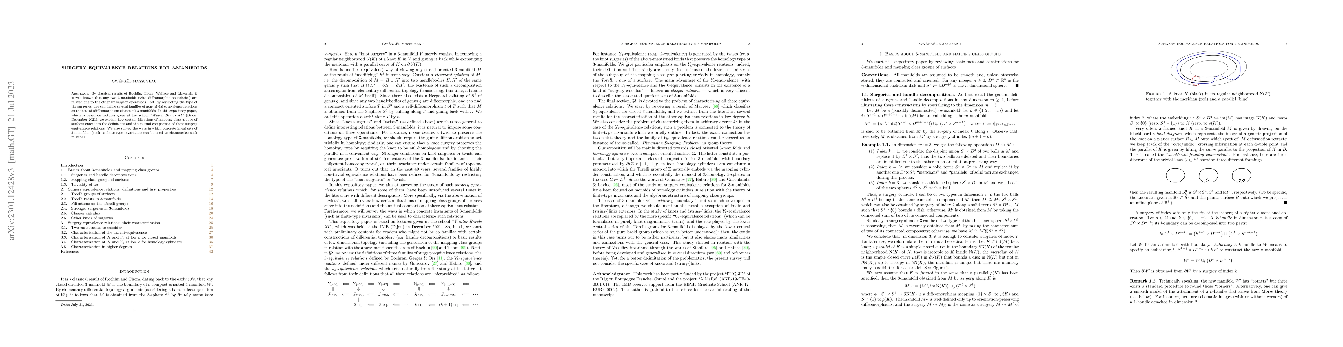 This paper explores various equivalence relations on 3-manifolds defined by restricted surgery operations, linking these relations to filtrations of mapping class groups and using finite-type invariants to characterize them. It is based on lectures from the "Winter Braids XI" school in Dijon.