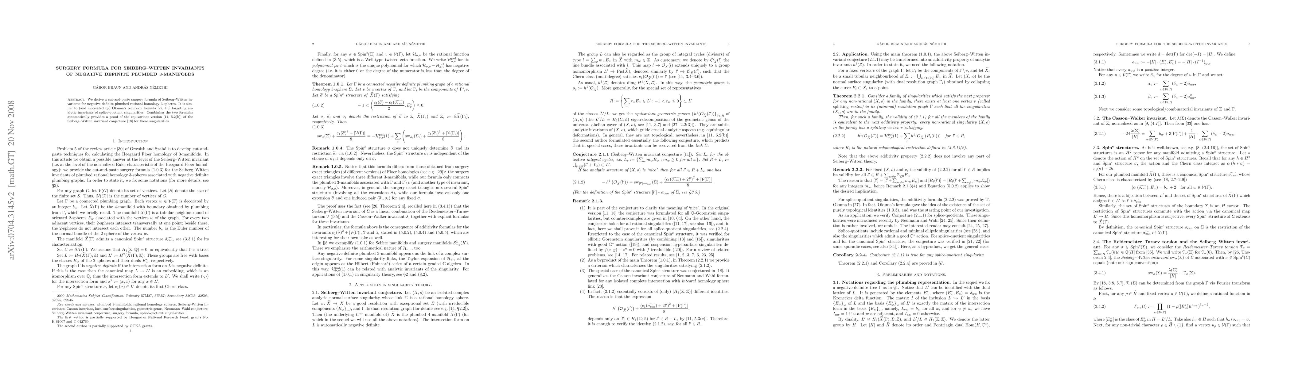 We derive a cut-and-paste surgery formula of Seiberg--Witten invariants for negative definite plumbed rational homology 3-spheres. It is similar to (and motivated by) Okuma's recursion formula [arXiv:math.AG/0610464, 4.5] targeting analytic invariants of splice quotient singularities. The two formulas combined provide automatically a proof of the equivariant version [arXiv:math.AG/0310084, 5.2(b)] of the `Seiberg--Witten invariant conjecture' [arXiv:math.AG/0111298] for these singularities.