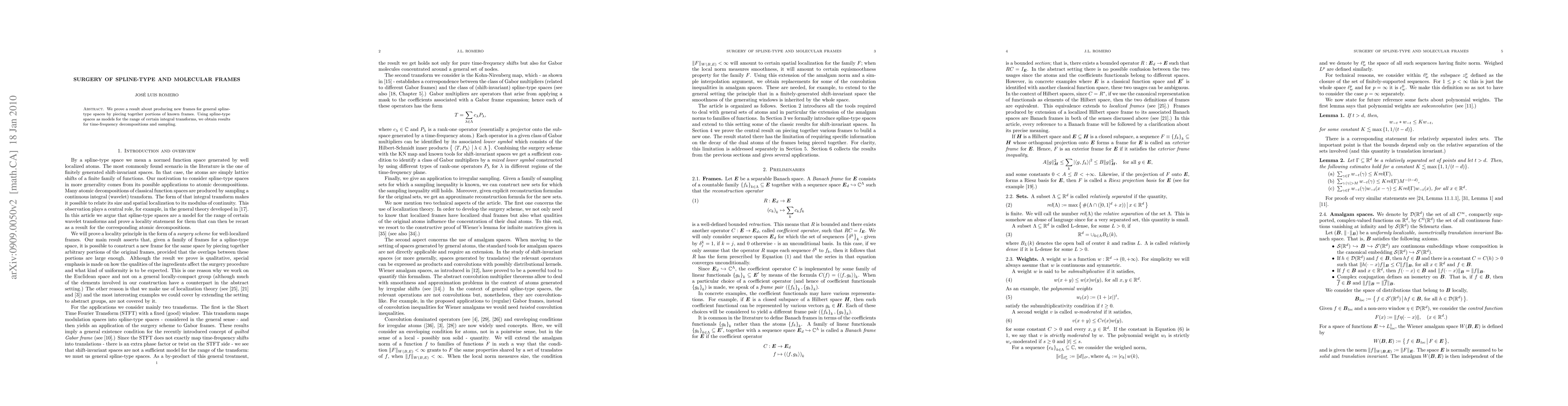 We prove a result about producing new frames for general spline-type spaces by piecing together portions of known frames. Using spline-type spaces as models for the range of certain integral transforms, we obtain results for time-frequency decompositions and sampling.