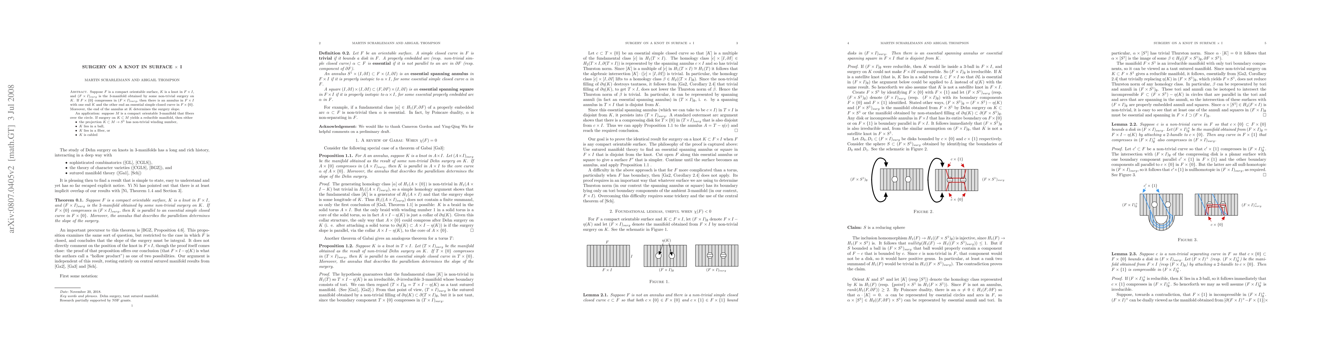 Summary: This paper investigates the effects of performing surgery on a knot embedded in a surface cross interval, showing that if a surface compresses in the resulting 3-manifold, an annulus connecting the knot to an essential curve exists. It also applies this to 3-manifolds that fiber over the circle, revealing conditions under which surgery on a knot results in a reducible manifold.