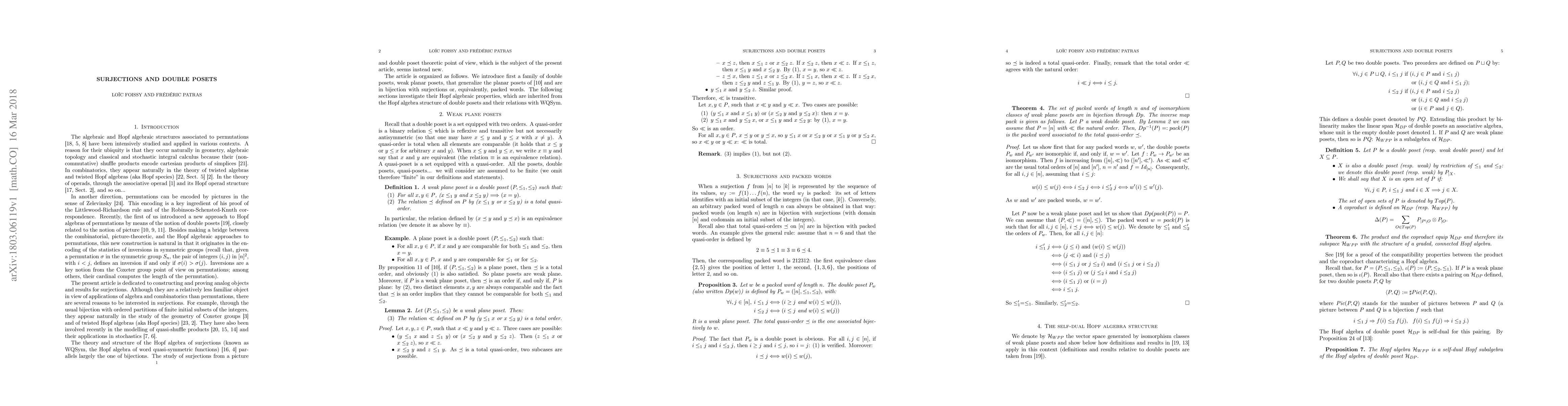 The theory and structure of the Hopf algebra of surjections (known as WQSym, the Hopf algebra of word quasi-symmetric functions) parallels largely the one of bijections (known as FQSym or MR, the Hopf algebra of word quasi-symmetric functions or Malvenuto-Reutenauer Hopf algebra). The study of surjections from a picture and double poset theoretic point of view, which is the subject of the present article, seems instead new. The article is organized as follows. We introduce first a family of double posets, weak planar posets, that generalize the planar posets and are in bijection with surjections or, equivalently, packed words. The following sections investigate their Hopf algebraic properties, which are inherited from the Hopf algebra structure of double posets and their relations with WQSym