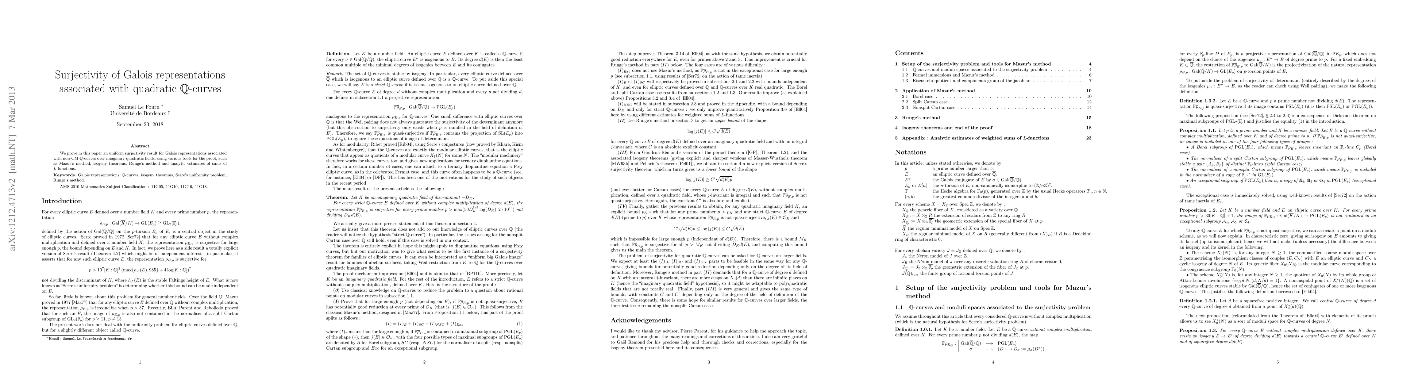 This paper establishes a uniform surjectivity result for Galois representations linked to non-CM quadratic $\mathbb{Q}$-curves over imaginary quadratic fields, employing techniques from Mazur's method, isogeny theorems, Runge's method, and analytic estimates of $L$-functions.