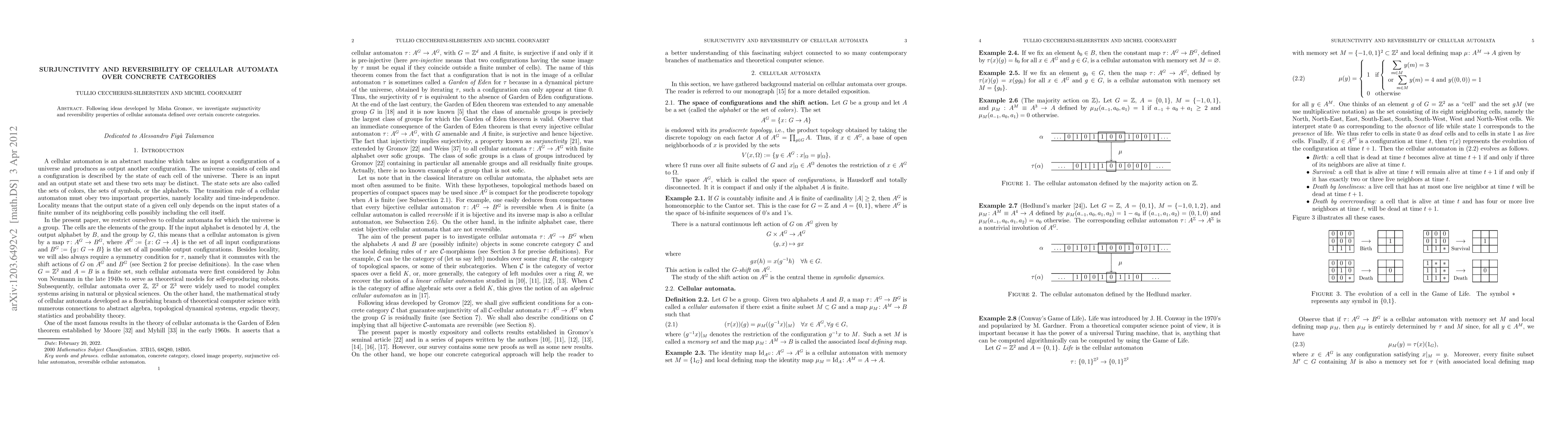 Following ideas developed by Misha Gromov, we investigate surjunctivity and reversibility properties of cellular automata defined over certain concrete categories.