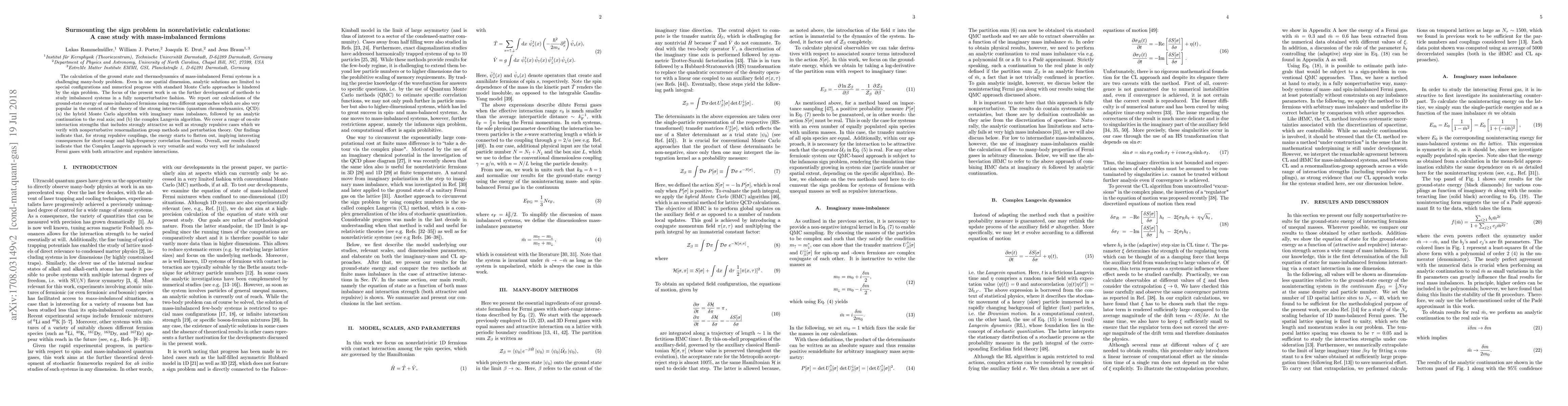 This paper develops non-perturbative methods to overcome the sign problem in calculating ground state and thermodynamics of mass-imbalanced Fermi systems, employing hybrid Monte Carlo and Complex Langevin algorithms. The Complex Langevin approach is found to be particularly effective for both attractive and repulsive interactions.