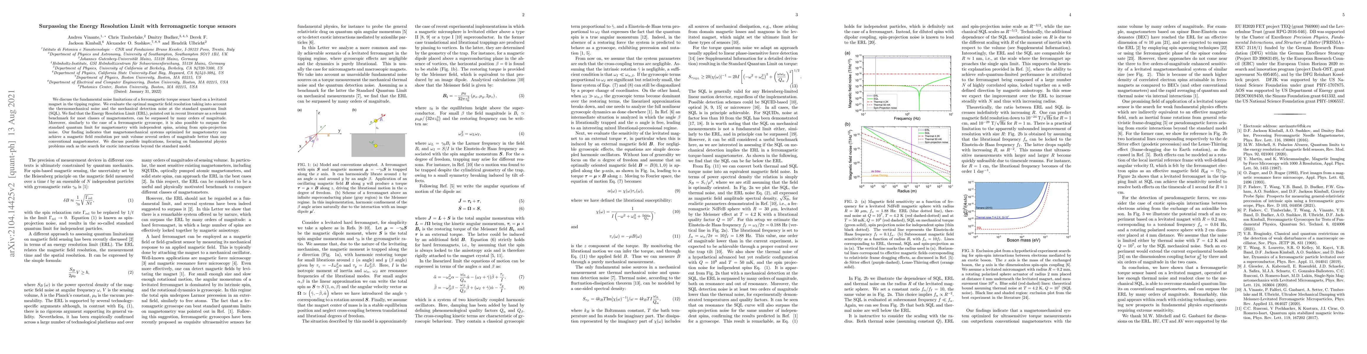 This paper demonstrates that ferromagnetic torque sensors utilizing levitated magnets can surpass the Energy Resolution Limit (ERL) by several orders of magnitude, achieving magnetic field resolutions far beyond conventional magnetometers. The study highlights the potential to exceed the standard quantum limit for magnetometry, with implications for exploring fundamental physics and exotic interactions.