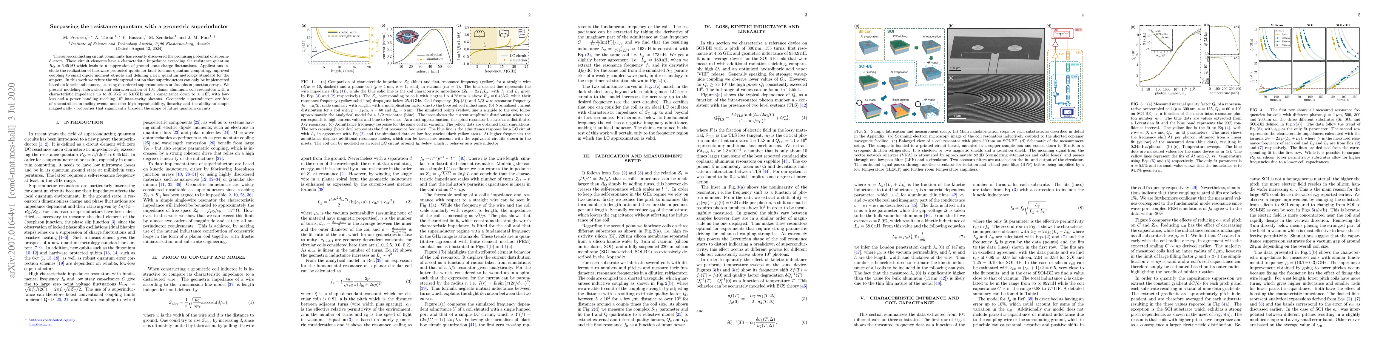 The superconducting circuit community has recently discovered the promising potential of superinductors. These circuit elements have a characteristic impedance exceeding the resistance quantum $R_\text{Q} \approx 6.45~\text{k}\Omega$ which leads to a suppression of ground state charge fluctuations. Applications include the realization of hardware protected qubits for fault tolerant quantum computing, improved coupling to small dipole moment objects and defining a new quantum metrology standard for the ampere. In this work we refute the widespread notion that superinductors can only be implemented based on kinetic inductance, i.e. using disordered superconductors or Josephson junction arrays. We present modeling, fabrication and characterization of 104 planar aluminum coil resonators with a characteristic impedance up to 30.9 $\text{k}\Omega$ at 5.6 GHz and a capacitance down to $\leq1$ fF, with low-loss and a power handling reaching $10^8$ intra-cavity photons. Geometric superinductors are free of uncontrolled tunneling events and offer high reproducibility, linearity and the ability to couple magnetically - properties that significantly broaden the scope of future quantum circuits.