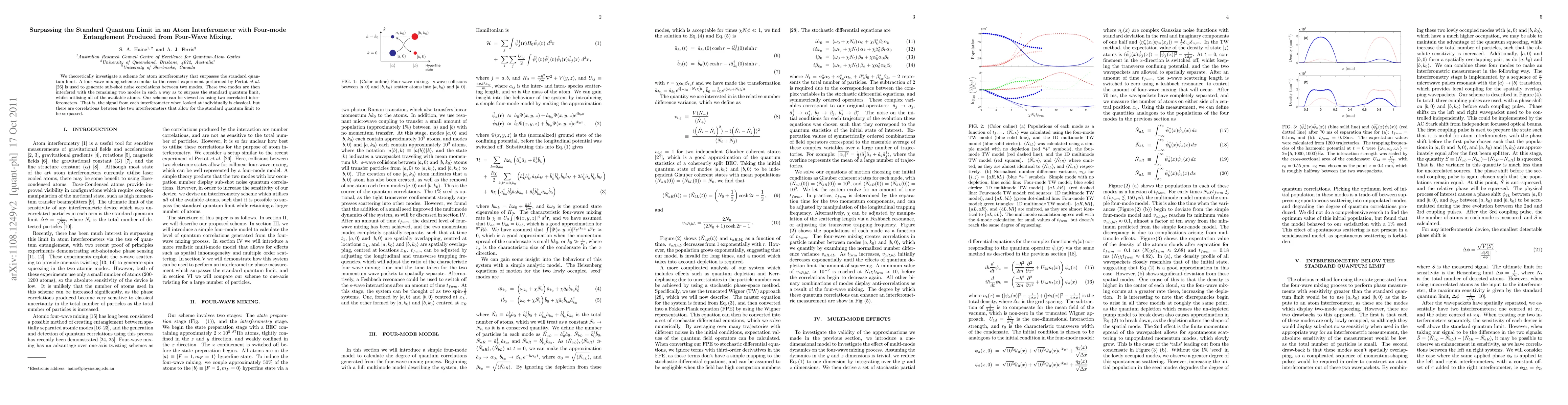 This paper proposes a method for atom interferometry that exceeds the standard quantum limit by employing four-wave mixing to generate sub-shot noise correlations. The scheme utilizes all available atoms and correlates two interferometers to achieve this quantum advantage.