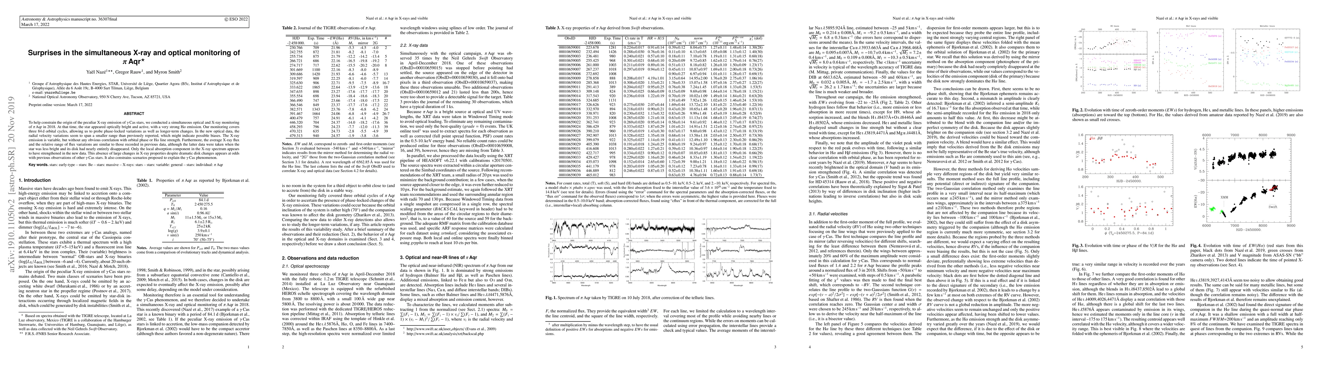 To help constrain the origin of the peculiar X-ray emission of gamma Cas stars, we conducted a simultaneous optical and X-ray monitoring of pi Aqr in 2018. At that time, the star appeared optically bright and active, with a very strong Halpha emission. Our monitoring covers three 84d orbital cycles, allowing us to probe phase-locked variations as well as longer-term changes. In the new optical data, the radial velocity variations seem to span a smaller range than previously reported, which might indicate possible biases. The X-ray emission is variable, but without any obvious correlation with orbital phase or Halpha line strength. Furthermore, the average X-ray flux and the relative range of flux variations are similar to those recorded in previous data, although the latter data were taken when the star was less bright and its disk had nearly entirely disappeared. Only the local absorption component in the X-ray spectrum appears to have strengthened in the new data. This absence of large changes in X-ray properties despite dramatic disk changes appears at odds with previous observations of other gamma Cas stars. It also constrains scenarios proposed to explain the gamma Cas phenomenon.