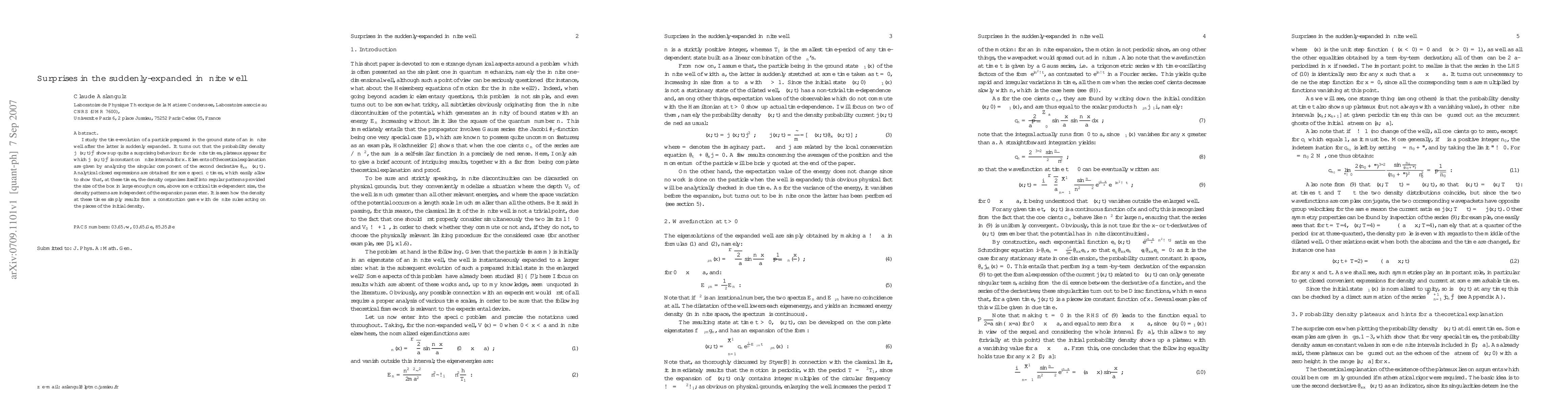 I study the time-evolution of a particle prepared in the ground state of an infinite well after the latter is suddenly expanded. It turns out that the probability density $|\Psi(x, t)|^{2}$ shows up quite a surprising behaviour: for definite times, {\it plateaux} appear for which $|\Psi(x, t)|^{2}$ is constant on finite intervals for $x$. Elements of theoretical explanation are given by analyzing the singular component of the second derivative $\partial_{xx}\Psi(x, t)$. Analytical closed expressions are obtained for some specific times, which easily allow to show that, at these times, the density organizes itself into regular patterns provided the size of the box in large enough; more, above some critical time-dependent size, the density patterns are independent of the expansion parameter. It is seen how the density at these times simply results from a construction game with definite rules acting on the pieces of the initial density.