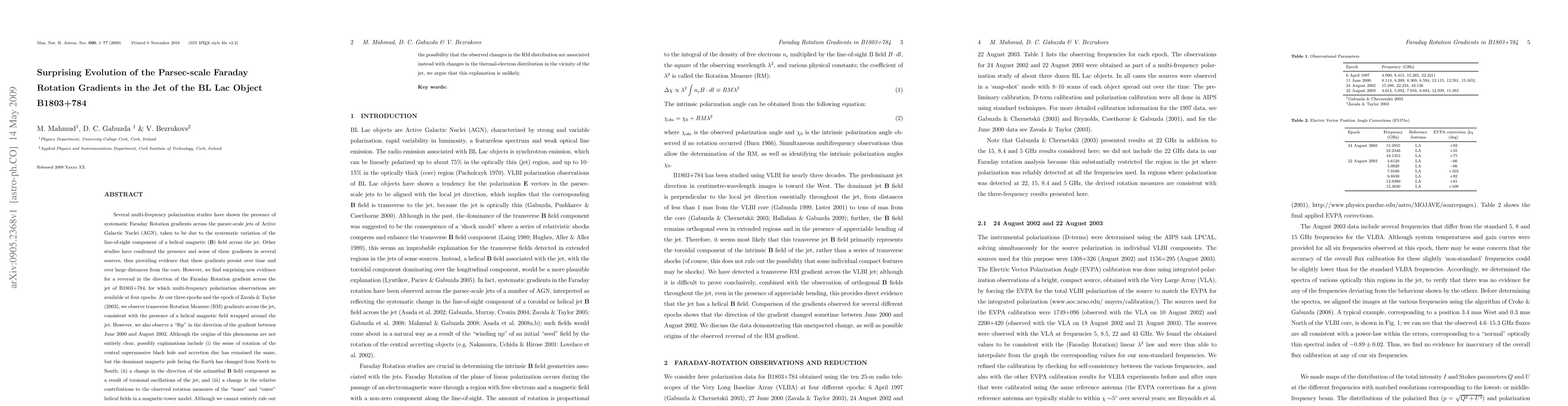 Researchers observed a reversal in the direction of Faraday Rotation gradients across the jet of BL Lac object B1803+784 over 6 years, challenging our understanding of magnetic fields in AGN jets.