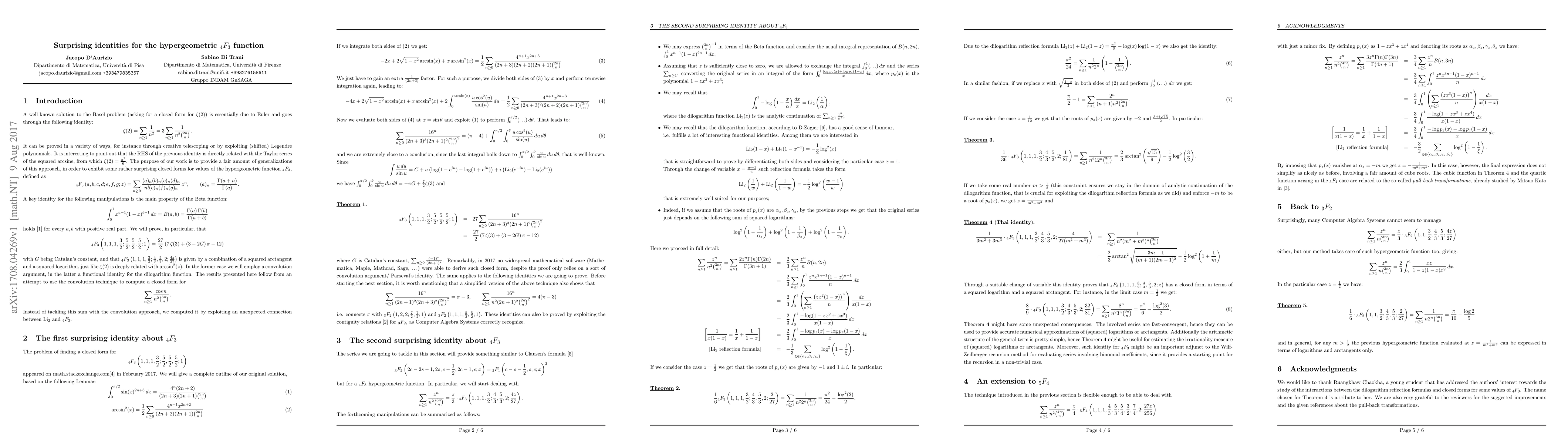A convolution approach leading to an explicit computation of a value of a 4F3 function is outlined. We also investigate about the role of the dilogarithm reflection formula, leading to a remarkable consequence: in some cases, values of 4F3 are given by linear combinations of a squared arctangent and a squared logarithm.