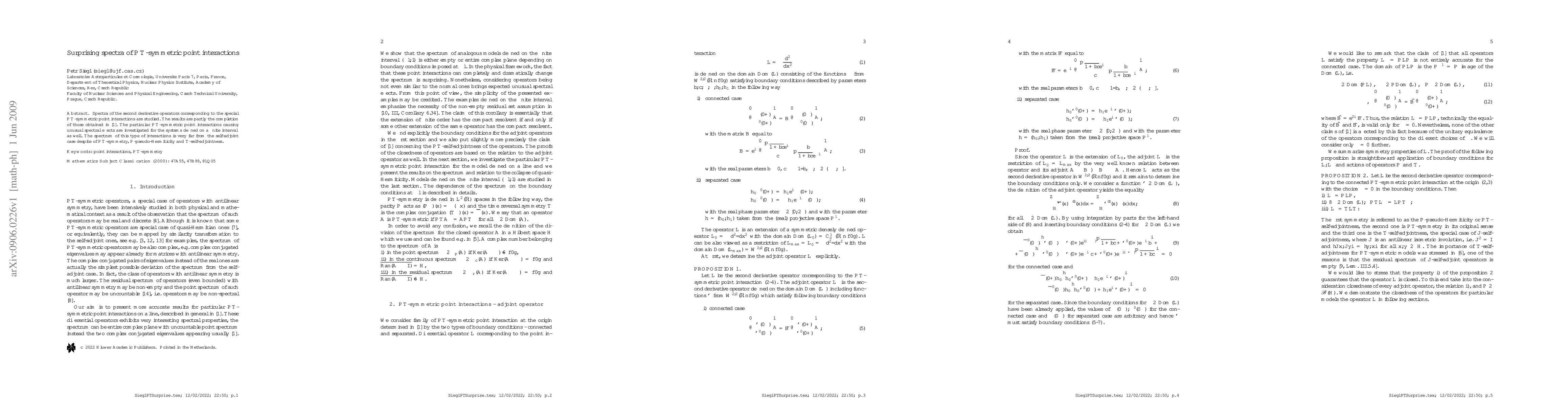 Spectra of the second derivative operators corresponding to the special PT-symmetric point interactions are studied. The results are partly the completion of those obtained in [1]. The particular PT-symmetric point interactions causing unusual spectral effects are investigated for the systems defined on a finite interval as well. The spectrum of this type of interactions is very far from the self-adjoint case despite of PT-symmetry, P-pseudo-Hermiticity and T-self-adjointness.