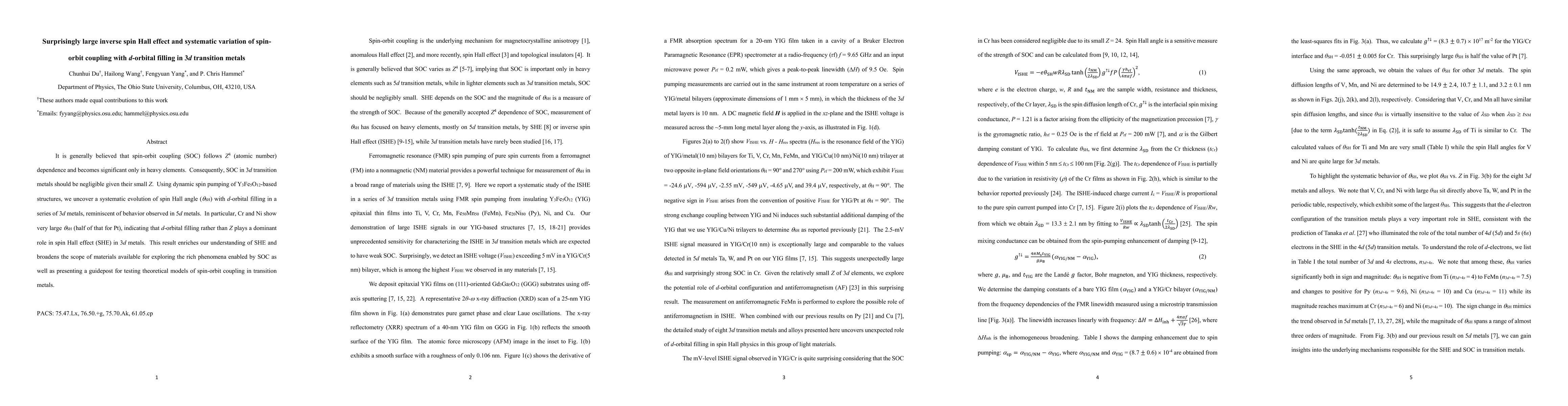 The study reveals a surprisingly large inverse spin Hall effect in 3d transition metals, challenging the notion that spin-orbit coupling is only significant in heavy elements. The systematic variation of spin-orbit coupling with d-orbital filling, rather than atomic number, highlights the potential of these materials for spintronic applications.