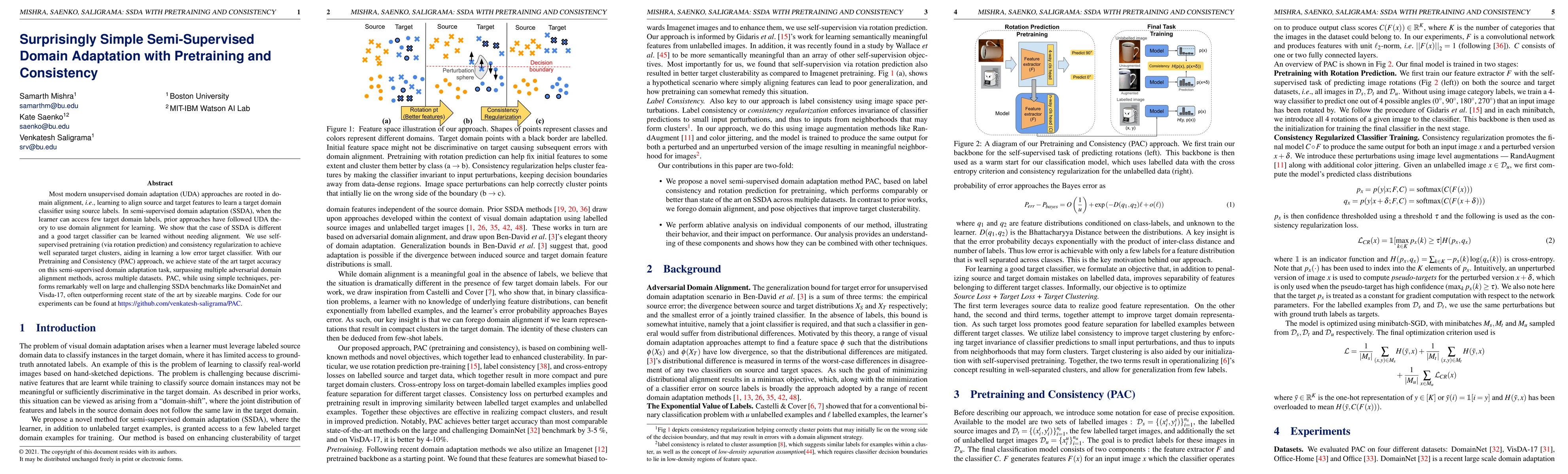 The paper proposes a simple yet effective semi-supervised domain adaptation method called Pretraining and Consistency (PAC) that leverages self-supervised pretraining and consistency regularization to achieve state-of-the-art target accuracy without requiring domain alignment, outperforming complex adversarial alignment techniques on benchmarks like DomainNet and Visda-17.
